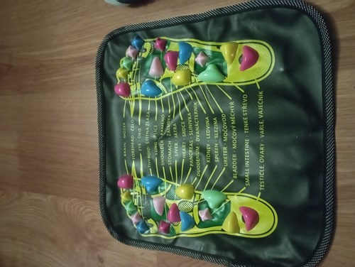 Akupresúrna podložka dokonale splní účel domácej reflexnej masáže. Istou výhodou je, že nemusíte chodiť k žiadnemu masérovi a masáž chodidiel zvládnete vďaka podložke úplne sami doma či v kancelárii. Mini akupresúrna podložka je čierna a má na sebe rôzne farebné kamienky, ktoré vypĺňajú obrysy chodidiel. Kamienky zodpovedajú bodom v tele a chodením po nich uvoľňujete vždy danú časť tela.
