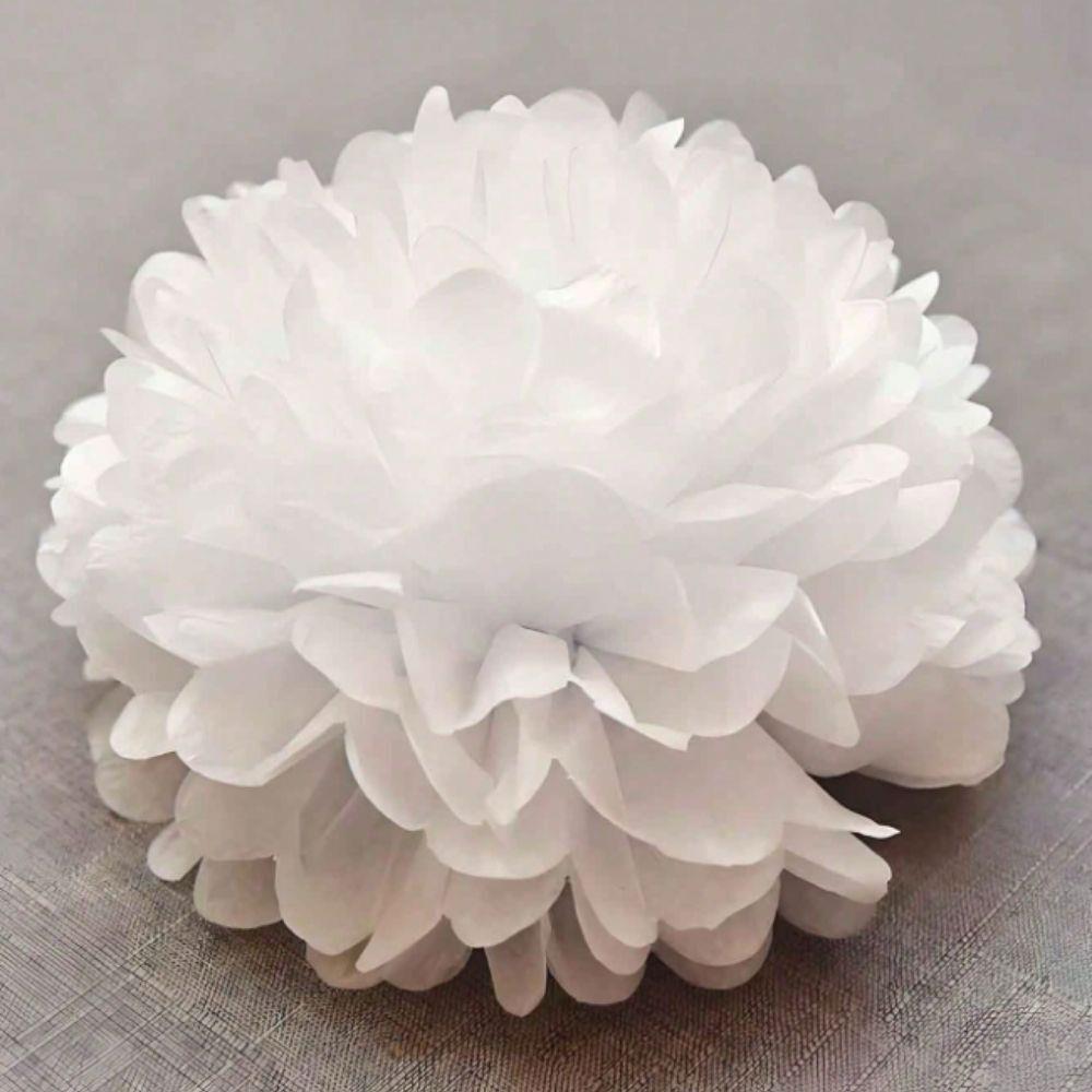 Biele papierové pompóny sú časom overeným dekoračným kúskom, ktorý premení každý priestor. Vďaka priemeru 20 cm vytvoria výrazný, ale vzdušný efekt – či ich zavesíte nad slávnostný stôl, rozmiestnite na stojany po celej sále, alebo nimi doplníte pozadie na fotenie. Sú dodávané v zloženom stave, takže ich skladovanie ani preprava nezaberú takmer žiadne miesto. Rozložíte ich bez nožníc, lepidla či iných pomôcok – stačí šikovne rozprestrieť vrstvy papiera a pompón je pripravený na použitie.