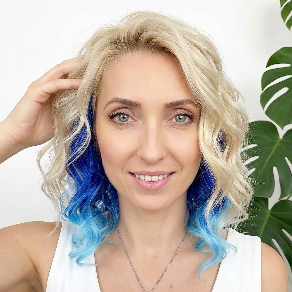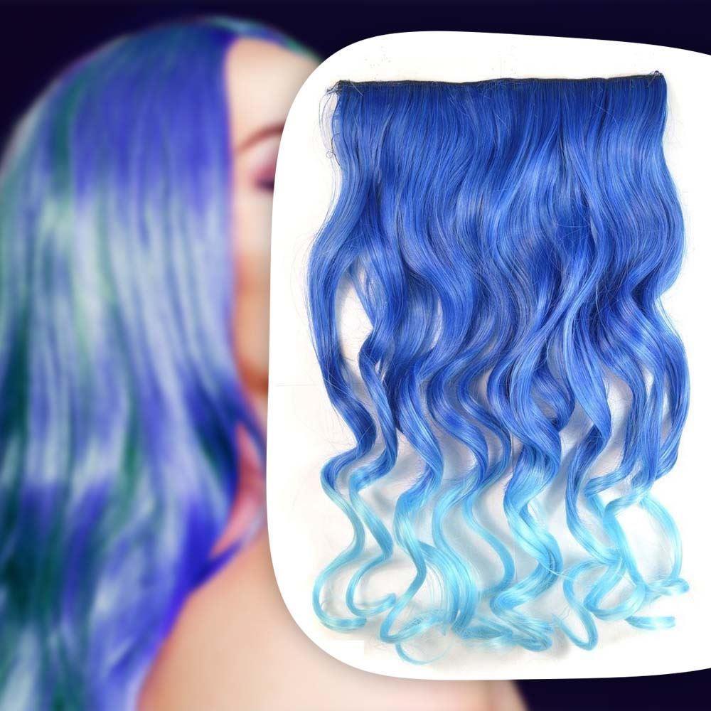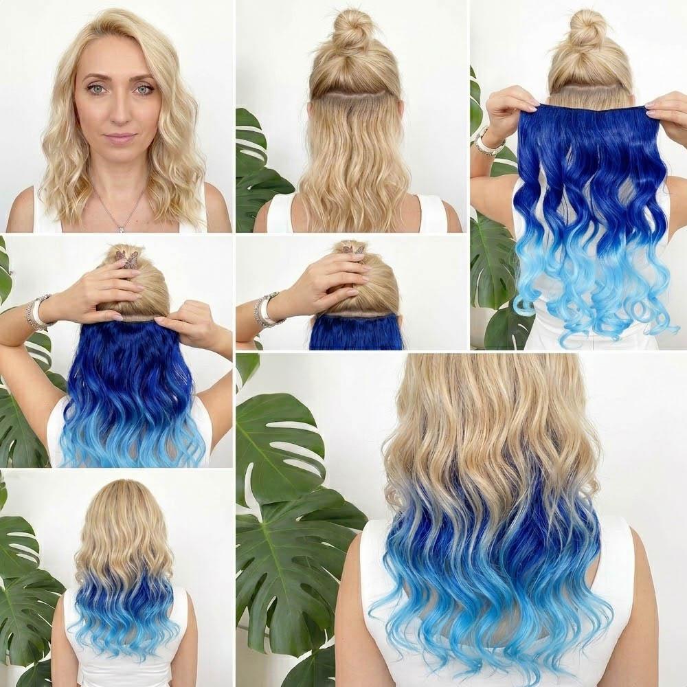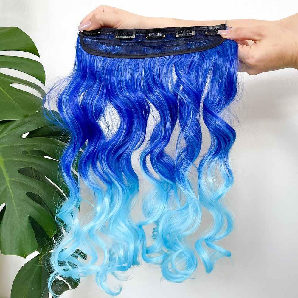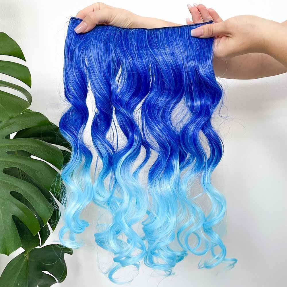 Clip in pás pre farebné podfarbenie vlasov - modrý