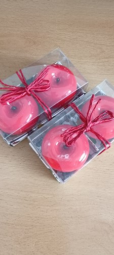 V tomto prípade dve červené jabĺčka, až sa dostali na váš slávnostne vyzdobený stôl. Ale pozor, do týchto sa zahryznúť by asi bolelo. Sú totiž z vosku, aj keď sa veľmi podobajú tým skutočným. Skvele sa budú hodiť aj na svietniky, alebo len tak na stolík, pri ktorom radi čítate. Nahradia obyčajné sviečky a priestoru dodajú nádych originality a elegancie. Zároveň nimi môžete obdarovať svojich blízkych, ak zháňate nejakú drobnosť, ktorá len tak nezapadne v zásuvke.