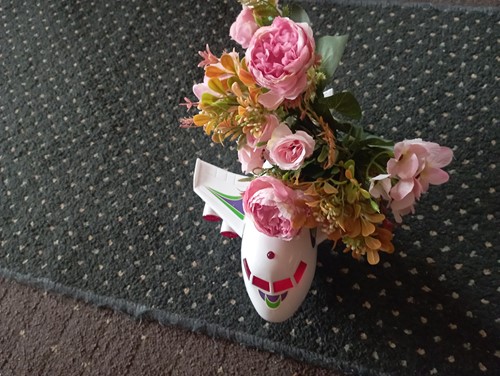 • Na úvodnej fotke sú vo váze použité 3 kusy kvetinového pugétu