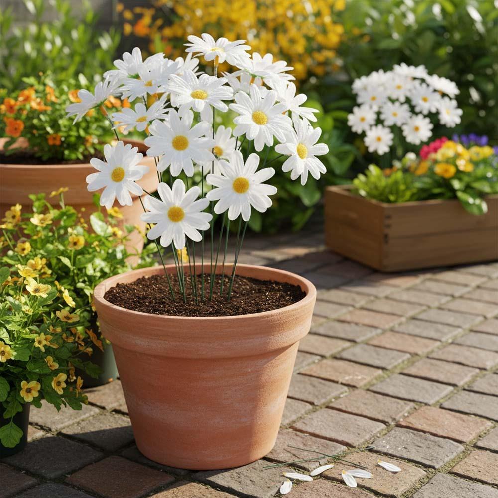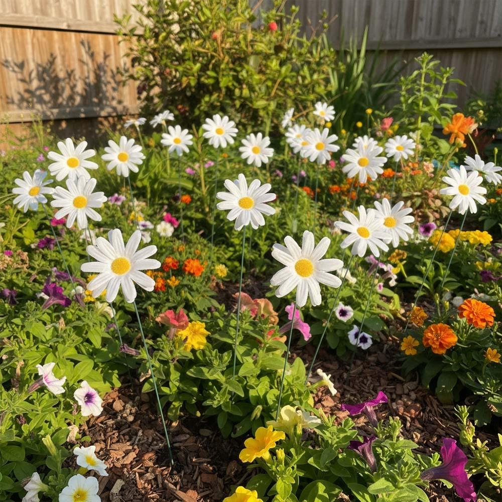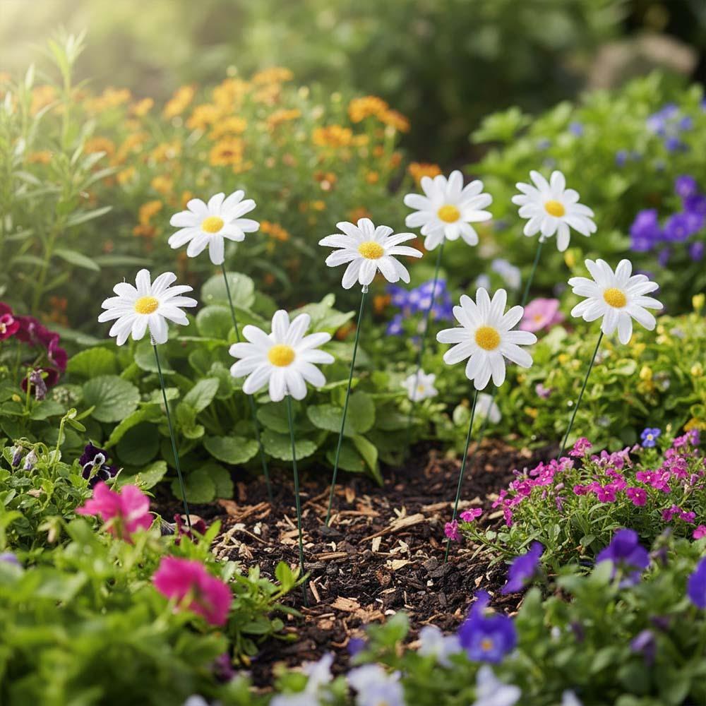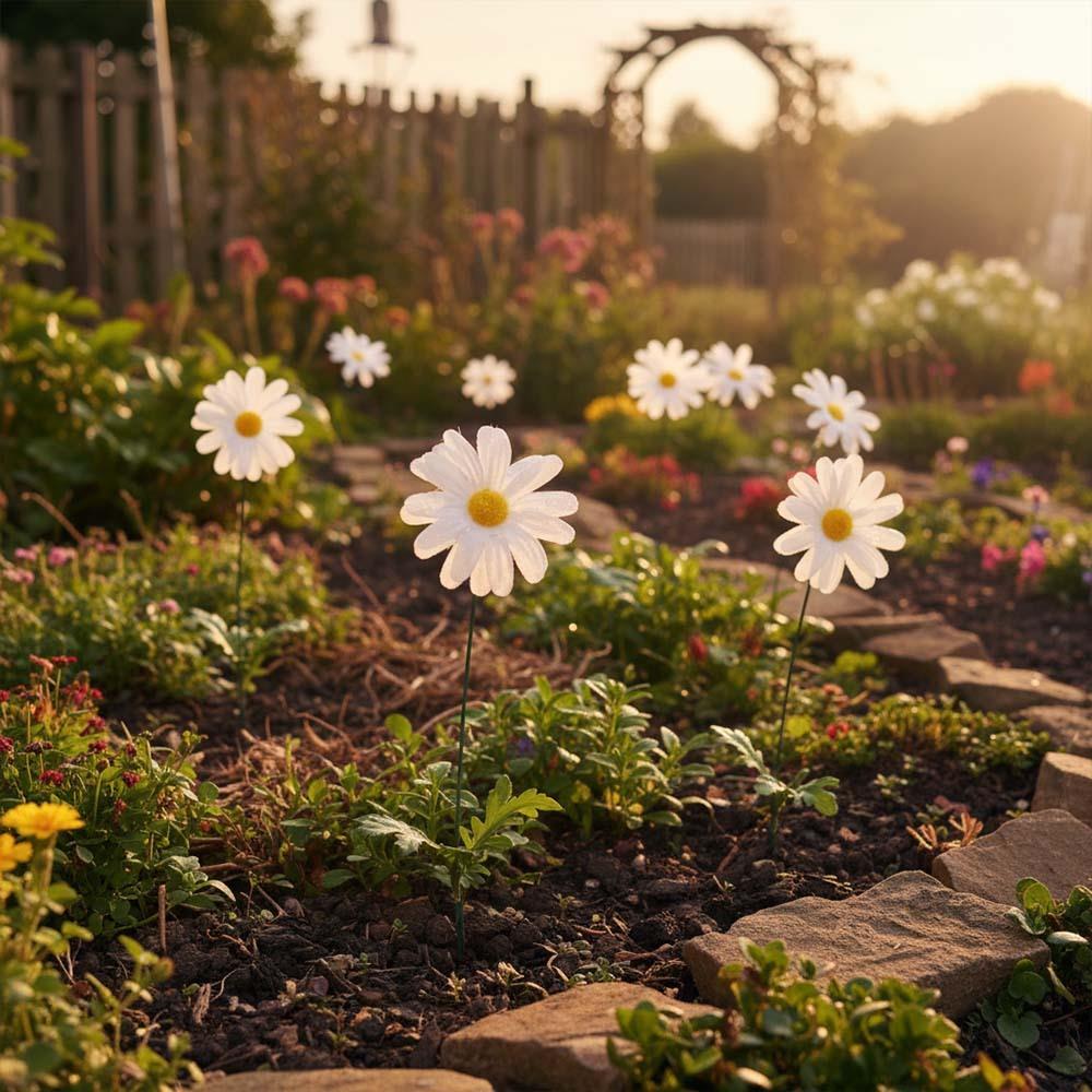 Vneste do záhrady kúzlo kvitnúcich lúk – bez potreby polievania, strihania alebo inej údržby! Dekoratívne margarétkové zapichovacie ozdoby sú ideálnym riešením pre tých, ktorí chcú svoje vonkajšie priestory ozvláštniť a rozžiariť ihneď. Zapichovacie ozdoby sa jednoducho umiestňujú do trávnika, záhona, kvetináča alebo napríklad pozdĺž záhradných chodníčkov. Zvládnu dážď, vietor aj ostré slnko a budú žiariť po celý rok.