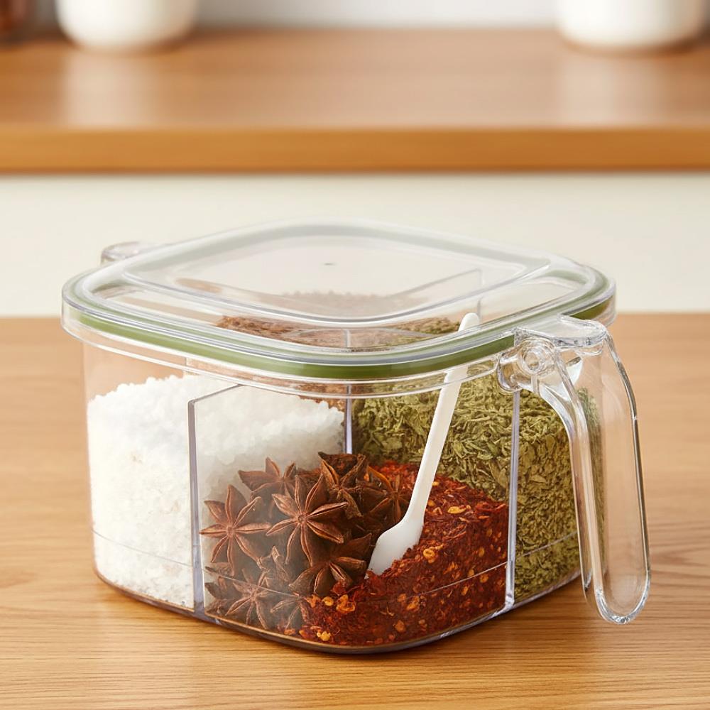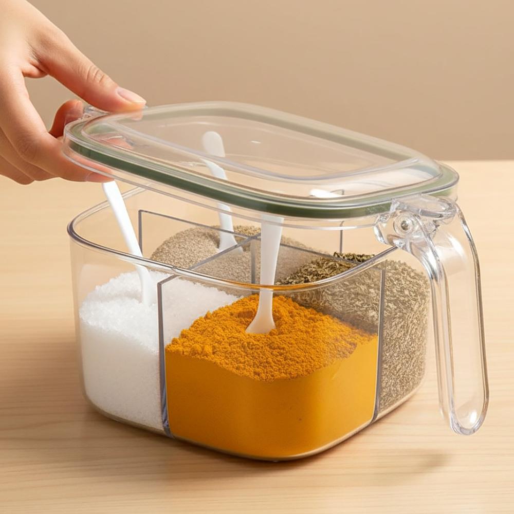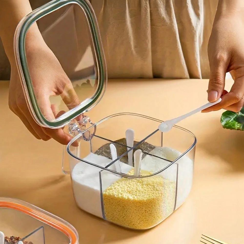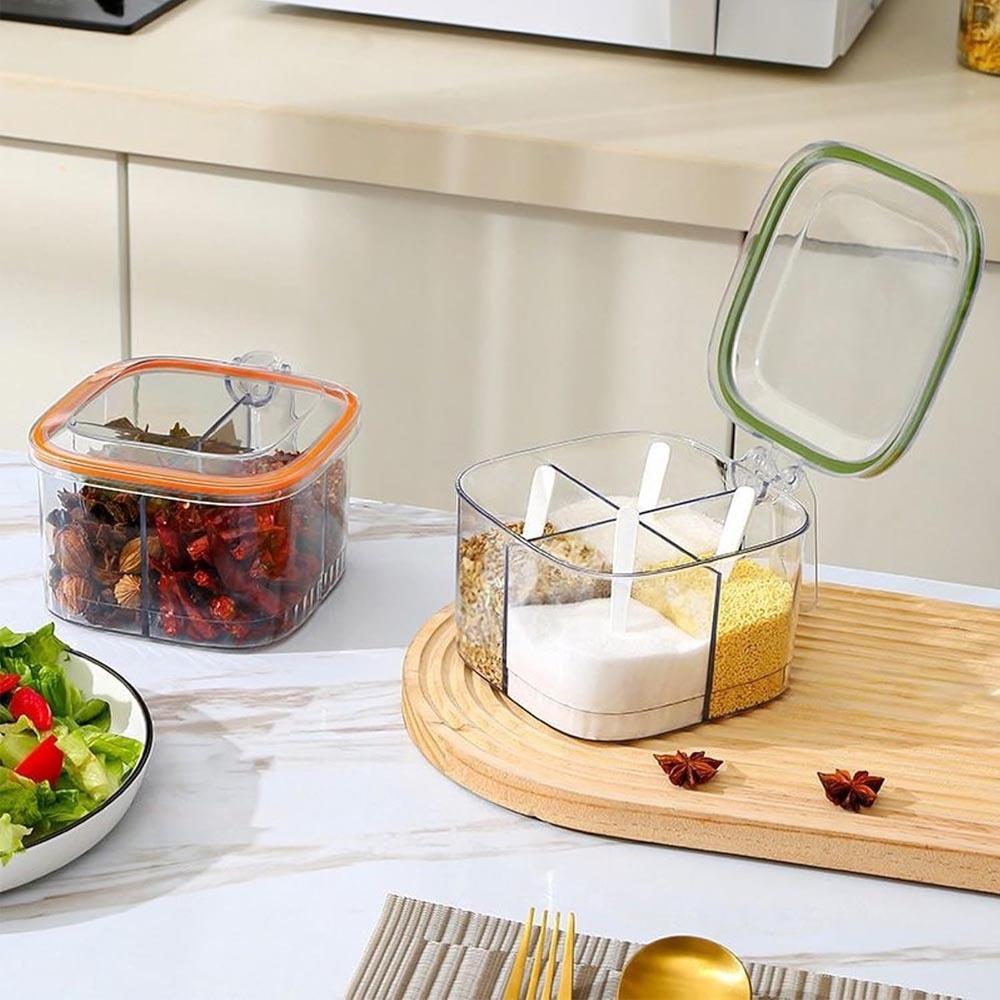 Každý, kto rád varí, vie, že správne dochutené jedlo dokáže ihneď zlepšiť náladu – jedno sústo a na chvíľu zabudneme na starosti celého dňa. Lenže kde všetky tie koreniny a pochutiny skladovať, aby nevyprchali a zároveň boli vždy poruke? Riešením je táto praktická delená dóza so štyrmi priehradkami, do ktorej bezpečne uschováte svoje obľúbené korenie a tiež budete vedieť, koľko vám ho ešte zostáva. Navyše sa v každej priehradke ukrýva praktická lyžička, takže už nebudete musieť otvárať zásuvky alebo mať korenie za nechtami. Pomocou úchytky tiež dózu jednoducho prenesiete napríklad na jedálenský stôl alebo von pri piknikovaní a budete mať všetko k dispozícii bez nebezpečenstva vysypania. Zabudnite na kopy koreničiek, ktoré akurát zaberajú miesto a často kvôli nim nasypete korenie viac, než potrebujete.