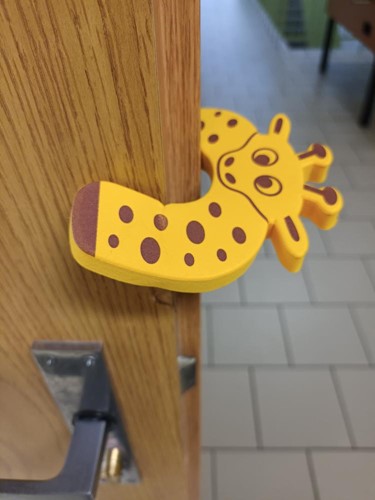 Vďaka roztomilému dizajnu v podobe žltej žirafy sa stane aj veselým doplnkom detskej izby. Je vyrobená z mäkkej, ale odolnej peny, ktorá nepoškodí rám dverí a odolá častému používaniu. Montáž je veľmi jednoduchá – stačí ju nasadiť na hranu dverí a je hotovo.