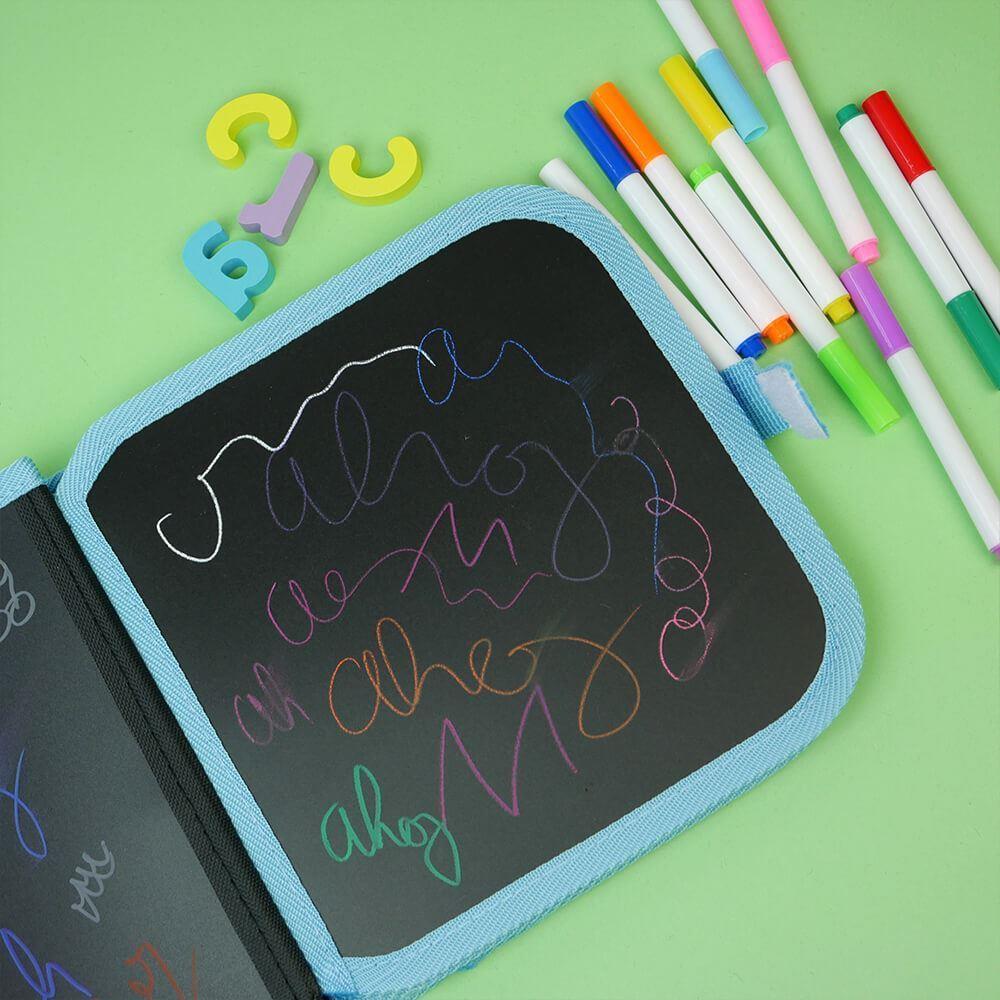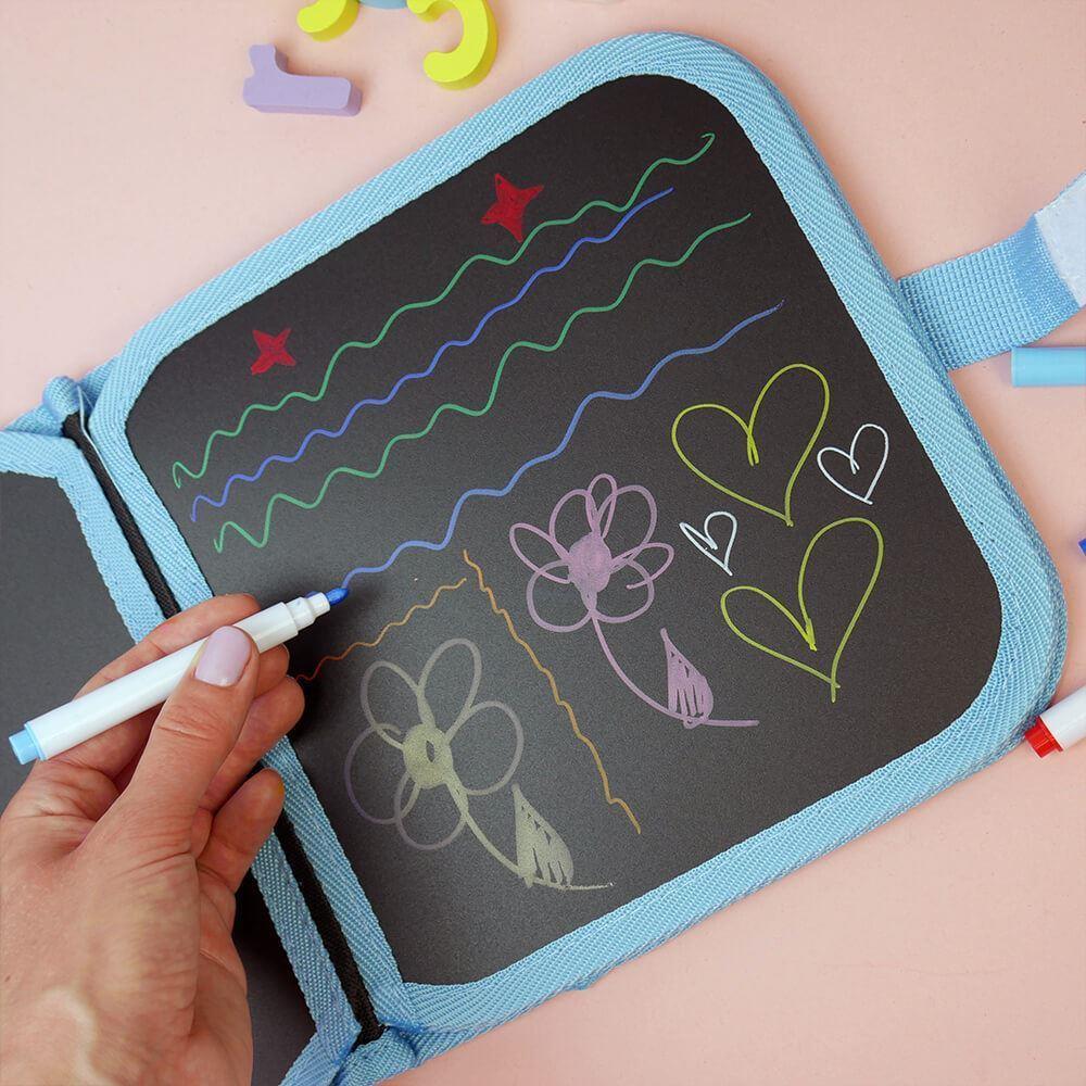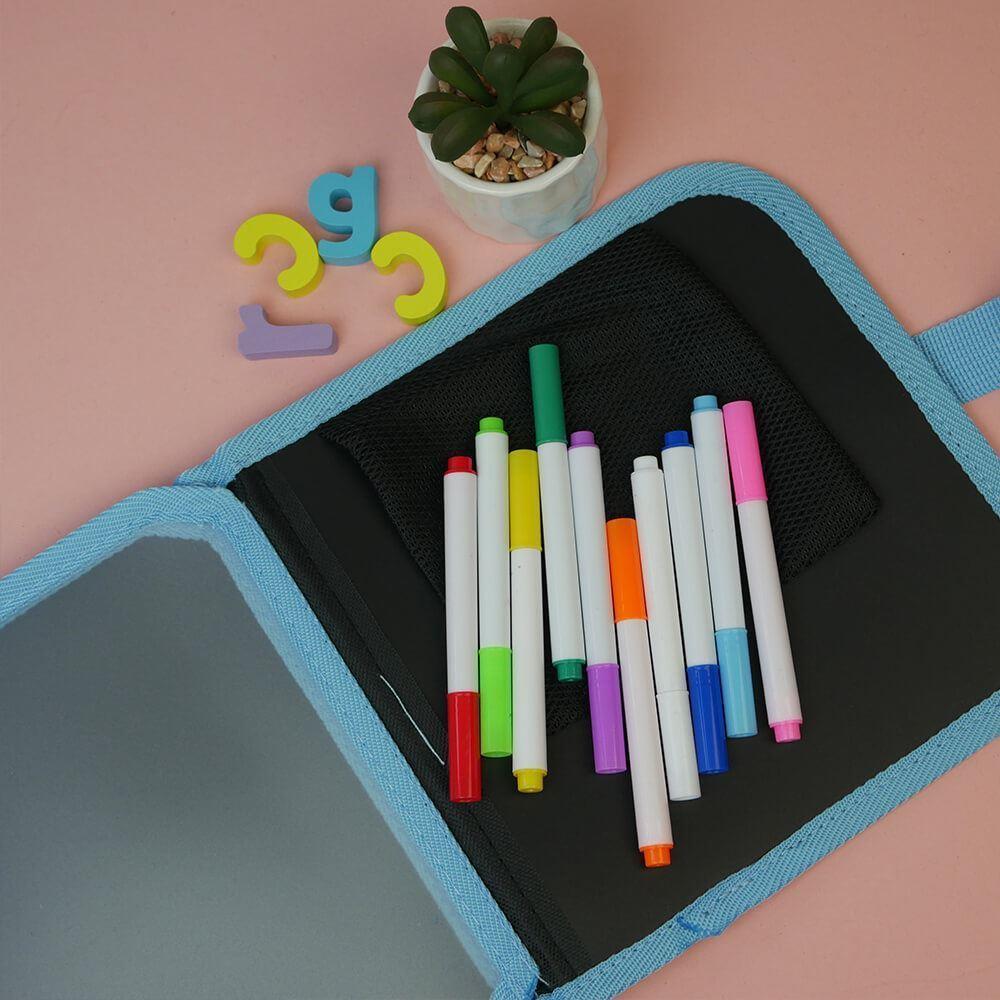 Súčasťou knižky je aj šikovné vrecko, kde sa nachádza niekoľko farebných fixiek. Vrecko je tak dobre urobené, že z neho fixky nevypadnú a hneď sa nepostrácajú. Nakreslené obrázky možno ľahko zotrieť pomocou vlhkej handričky. Knižku možno využiť kdekoľvek, v čakárni u lekára, na cestách autom, vlakom, autobusom alebo doma. Všade dokáže deti zabaviť.