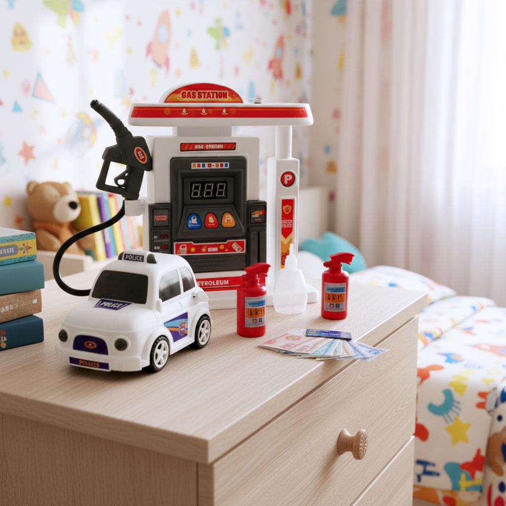Mnoho detí sa s nadšením hrá na dospelých – veď ich svet je plný toľkých vecí, na ktoré sa tešia, len čo vyrastú! Vidia nás pri denných činnostiach, ktoré by si tak radi vyskúšali, ale zatiaľ sa musia len pozerať, keďže nám ešte nemôžu pomáhať. Každá hra na „dospelákov“ alebo jednoducho na nejaké povolanie je teda nielen zábavou, ale aj učením. Ak by ste radi potešili svoje ratolesti originálnou hrou, s ktorou si nielen budú pripadať ako veľkí, ale ktorá im tiež rozvinie schopnosti a predstavivosť, môžete im zaobstarať túto kúzelnú sadu autíčka a plne funkčnej čerpacej stanice. Vyskúšajú si tak tankovanie auta podobne ako keď vás sledujú z okienka vozidla na tej skutočnej! Stanicu najprv naplňte vodou a potom nechajte svoje deti, aby si skúsili pomocou pištole natankovať autíčko. Tlačidlami na stanici môžu zvoliť typ paliva, samotné tankovanie aj hracie zvuky.
