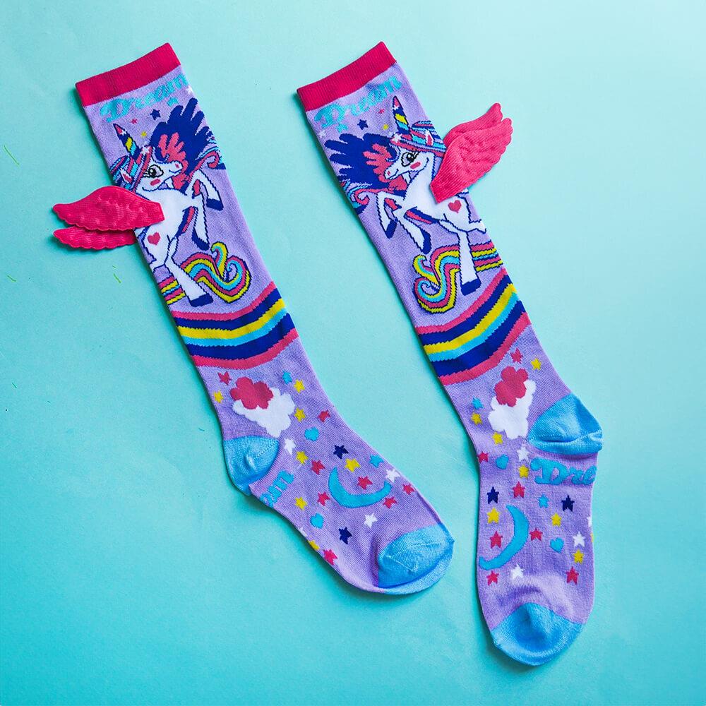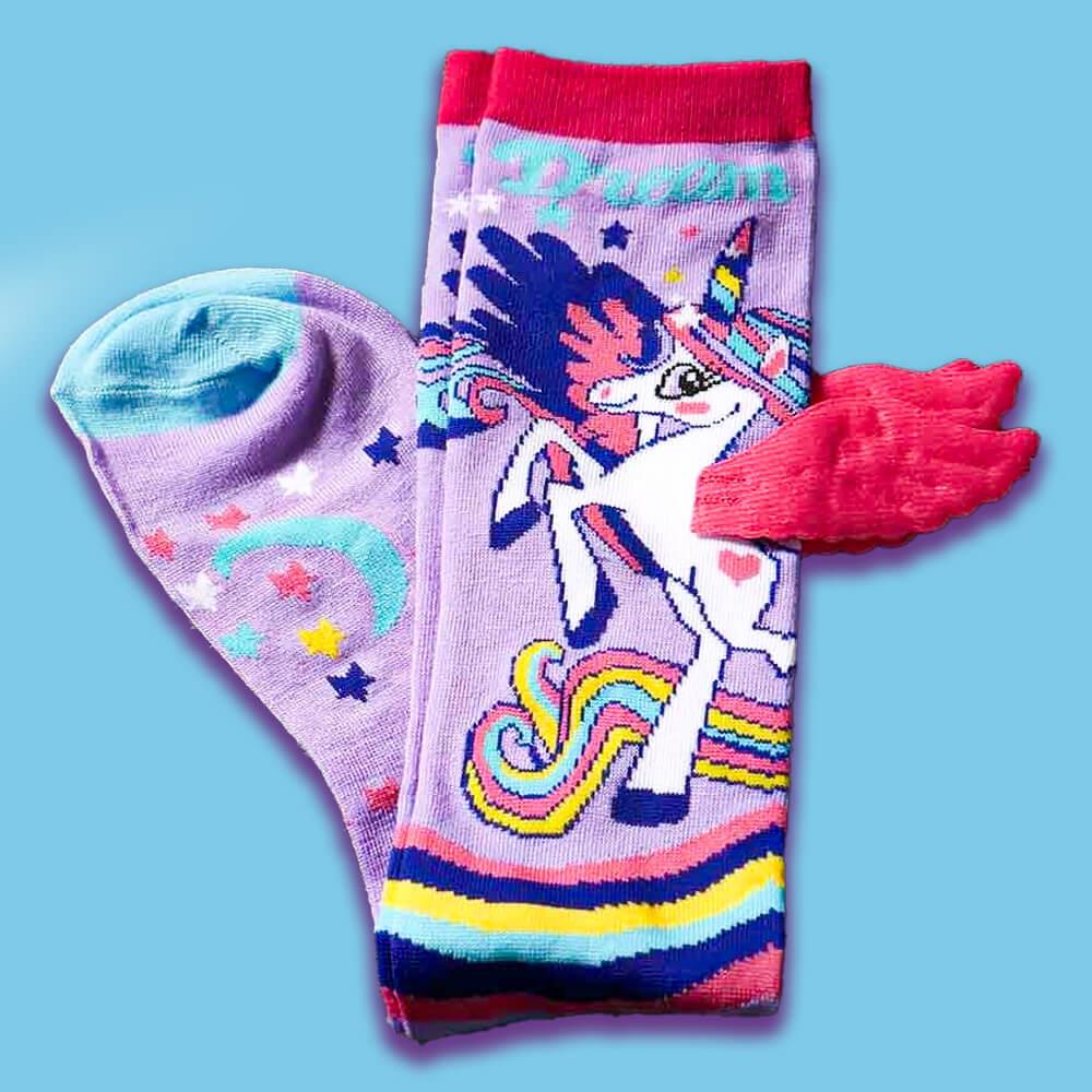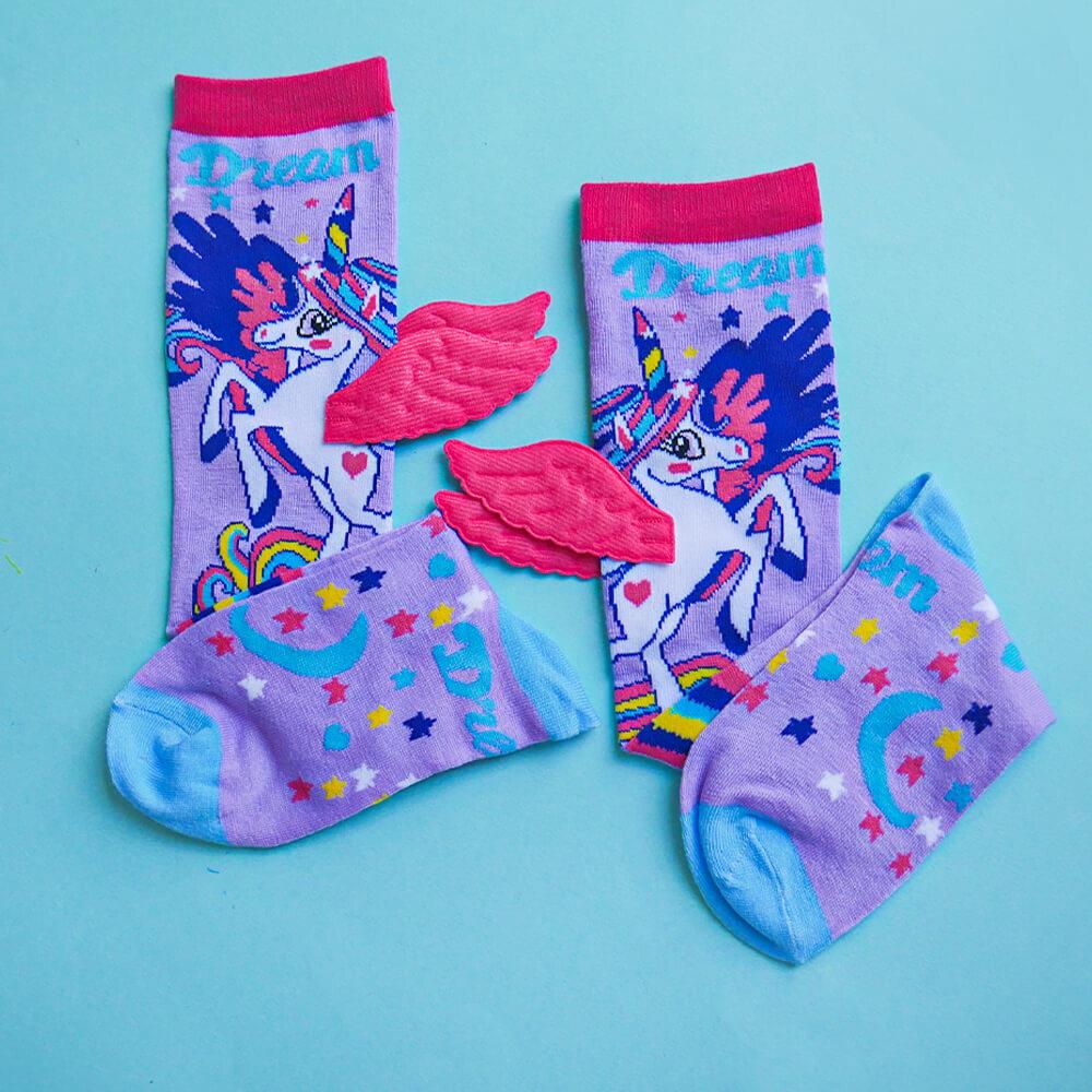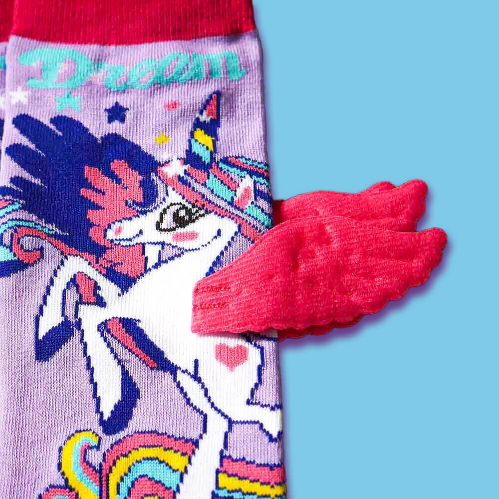 Detské ponožky s jednorožcom sú dokonalým módnym doplnkom pre každú malú parádnicu. Sú navrhnuté tak, aby nielen dobre vyzerali, ale aj skvele slúžili. Mäkký a pružný materiál zaručuje pohodlie a príjemný pocit po celý deň. 3D krídelká pridávajú jedinečný efekt, ktorý zaujme už na prvý pohľad. V kombinácii s pastelovými farbami a veselou potlačou pôsobia ako z rozprávky. Sú perfektným darčekom, ktorý poteší každú malú milovníčku jednorožcov. V chladnejších dňoch udržia nožky v teple, v teplejších zase vyčarujú úsmev na tvári. Hodia sa ako na doma, na cesty, tak aj do škôlky.