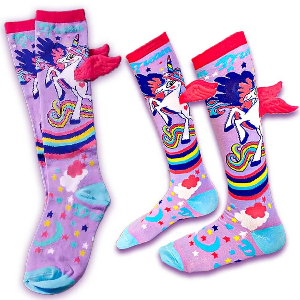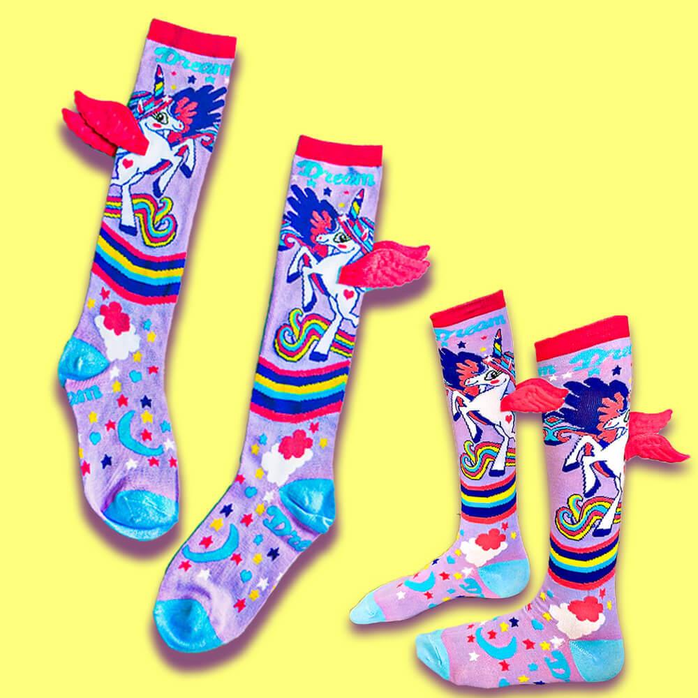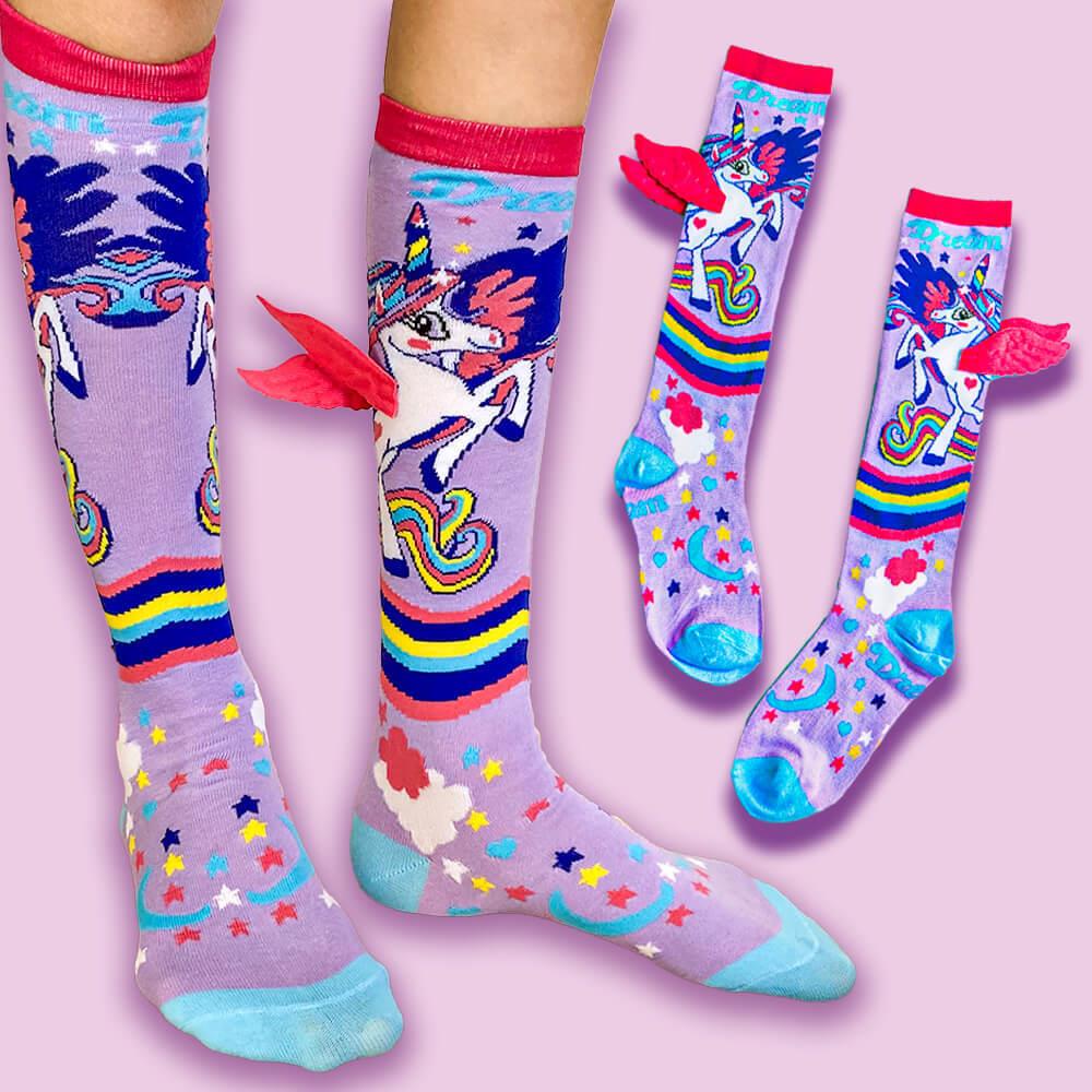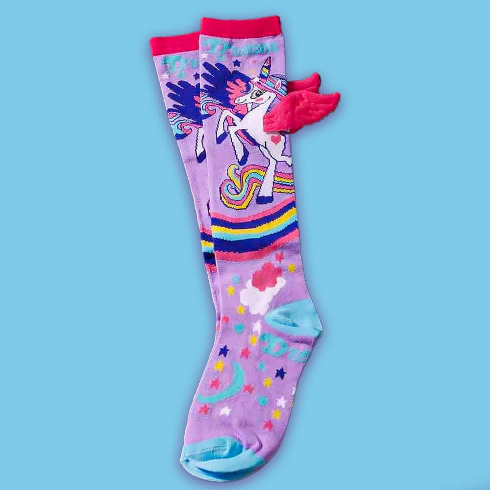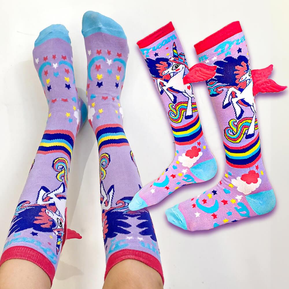 Detské ponožky s jednorožcom sú dokonalým módnym doplnkom pre každú malú parádnicu. Sú navrhnuté tak, aby nielen dobre vyzerali, ale aj skvele slúžili. Mäkký a pružný materiál zaručuje pohodlie a príjemný pocit po celý deň. 3D krídelká pridávajú jedinečný efekt, ktorý zaujme už na prvý pohľad. V kombinácii s pastelovými farbami a veselou potlačou pôsobia ako z rozprávky. Sú perfektným darčekom, ktorý poteší každú malú milovníčku jednorožcov. V chladnejších dňoch udržia nožky v teple, v teplejších zase vyčarujú úsmev na tvári. Hodia sa ako na doma, na cesty, tak aj do škôlky.