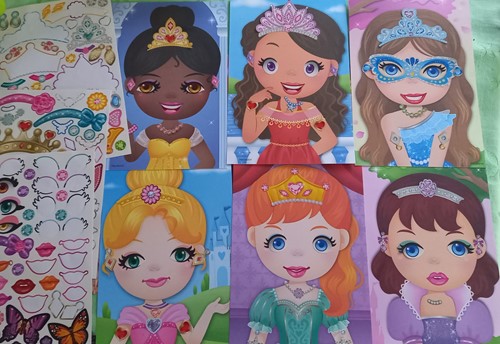 6leté holčička byla nadšená, vytvářela různé obličeje princezen s různými doplňky, moc jí to bavilo. Nakonec se dají samolepky zase sundat a opakovaně použít