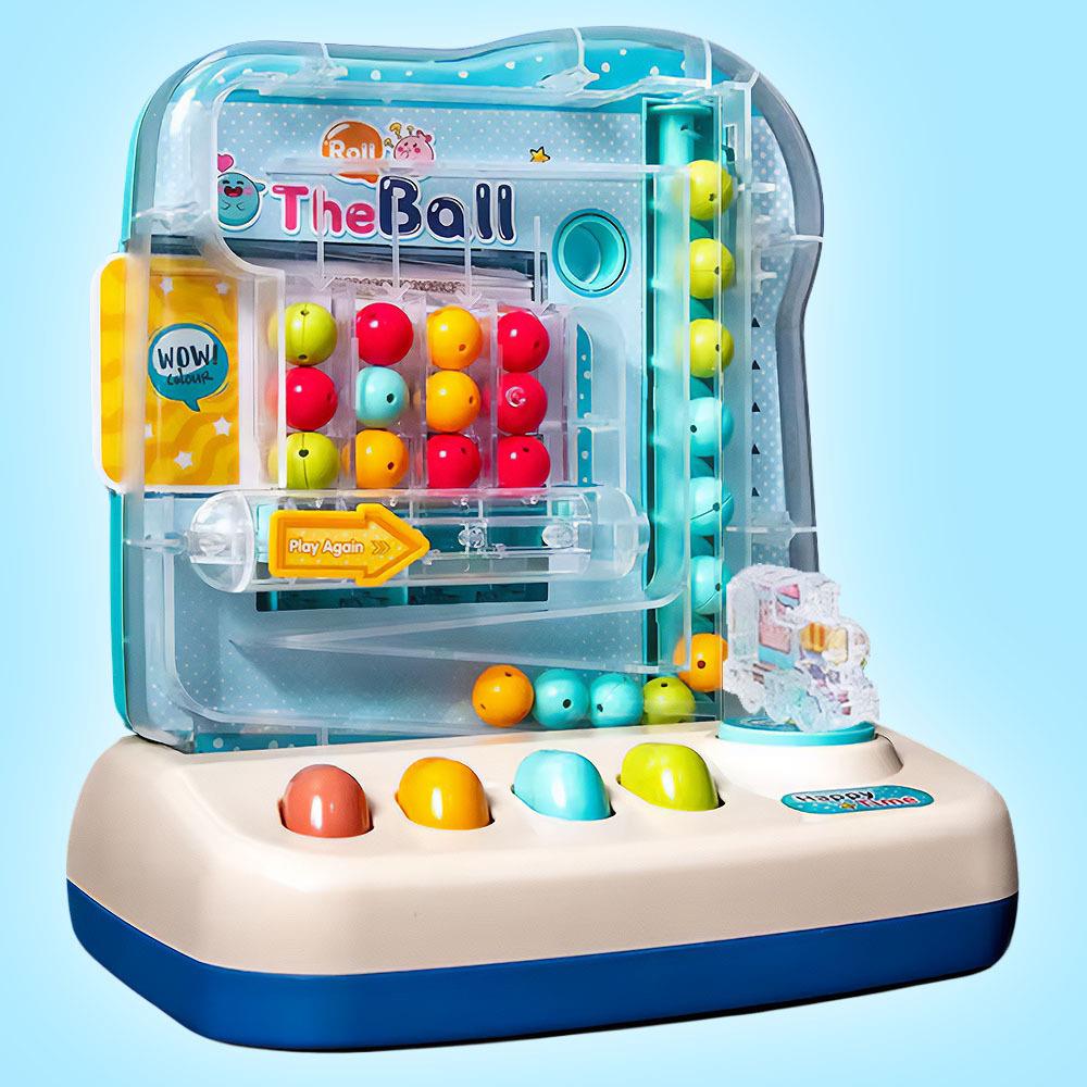 Farebné guličky je potrebné správne zaradiť podľa vzoru na vloženej kartičke. Automat reaguje na vložené guličky aj na interakciu s tlačidlami, čím deťom vytvára autentický herný zážitok ako v skutočnej arkáde.