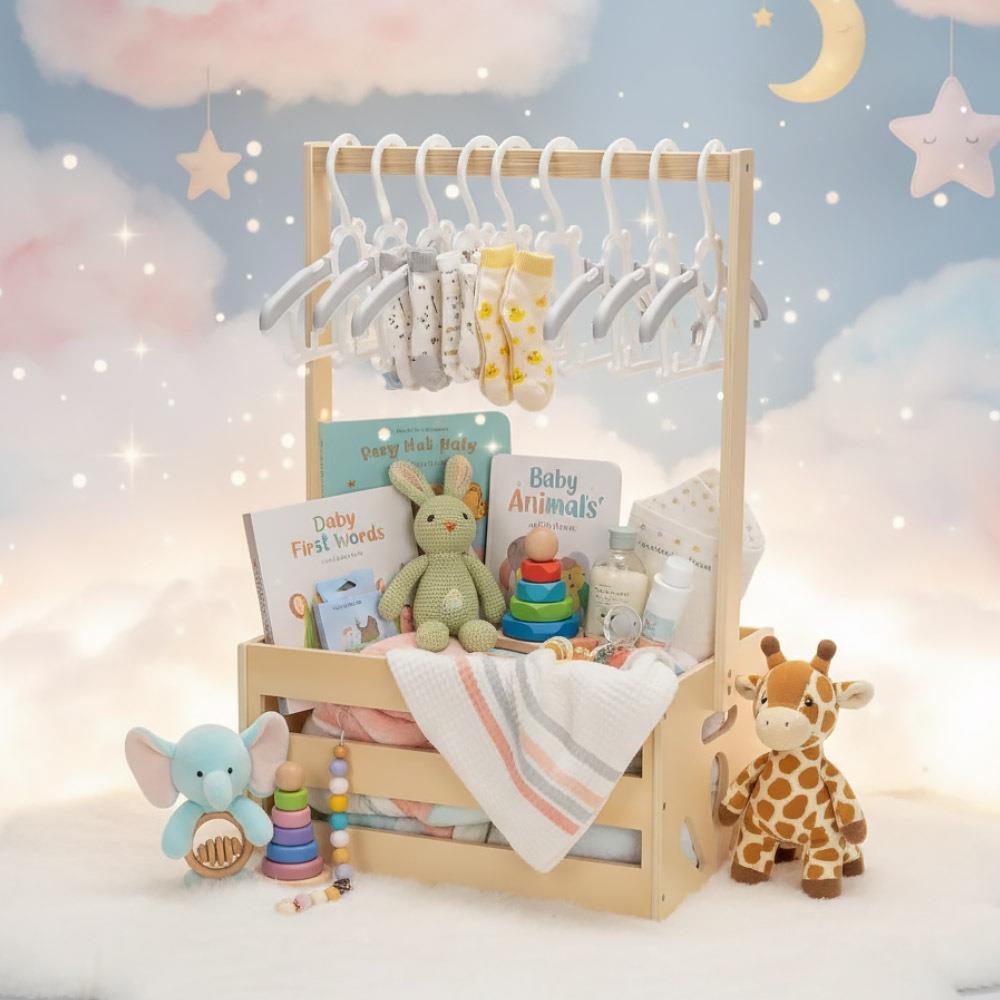 Darčekový kôš so stojanom k narodeniu dieťaťa