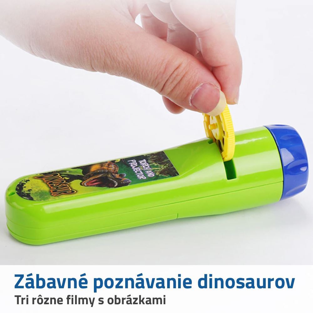 Odtrhnite deti od moderných technológií a ukážte im, ako funguje premietačka! Dinozaurí projektor je praktická baterka, pomocou ktorej môžete na stenu či nábytok premietať obrázky dinosaurov. Balenie obsahuje 3 rôzne filmy plné obrázkov z dávnych dôb. Projektor pomáha rozvíjať predstavivosť a fantáziu. Tak sa pohodlne usaďte, zhasnite svetlá a užite si dinosaury u seba doma.