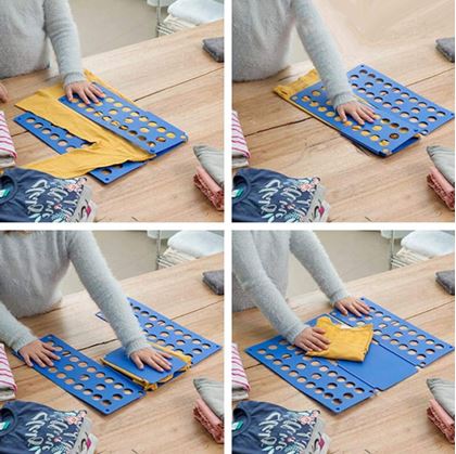 Táto vychytávka je určená pre všetky gazdinky, ktoré nechcú strácať čas perfektným skladaním tričiek alebo tiež pre jedincov, ktorým sa schopnosť pekne zložiť tričko vyhla oblúkom. Skladanie tričiek nikdy nebolo jednoduchšie!