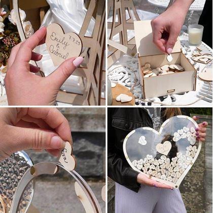 Každý svadobčan sa na malé srdiečko môže podpísať, vytvoriť kresbu alebo odkaz a vhodiť ho do veľkého srdca. Spoločne tak vytvoria novomanželom krásnu spomienku na ich deň D. Možno využiť napríklad aj na oslave okrúhlych narodenín.