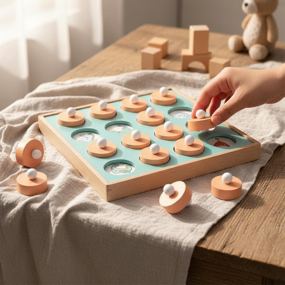 Drevená pamäťová hra s vymeniteľnými obrázkami