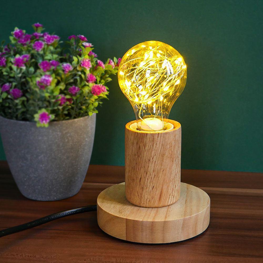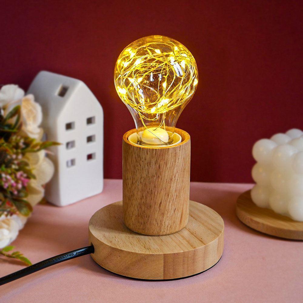 Drevená stolná lampa so žiarovkou - teplé svetlo