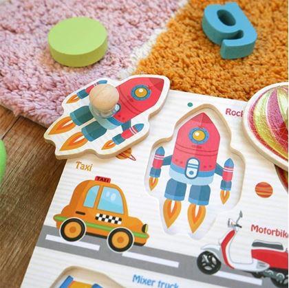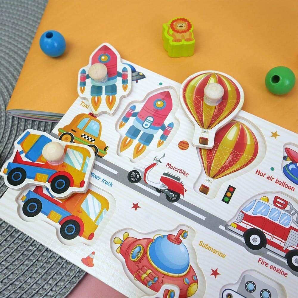 Obrázkové vkladačky zostávajú hitom medzi menšími deťmi a patria medzi najobľúbenejšie logické hračky. Niet sa čomu čudovať, je to predsa zábava sledovať, kam by daný motív mohol patriť a tešiť sa, keď sa dieťa trafí a dielik ľahko zapadne do výrezu. Jednu takú máme aj pre vás a sme si istí, že deti nielen zabaví, ale tiež im pomôže naučiť sa množstvu zručností, napríklad jemnej motorike, rozpoznávaniu tvarov a ich asociácii, a vďaka anglickým popisom pri jednotlivých obrázkoch sa postupne naučia aj, ako sa slovíčko povie v cudzom jazyku.