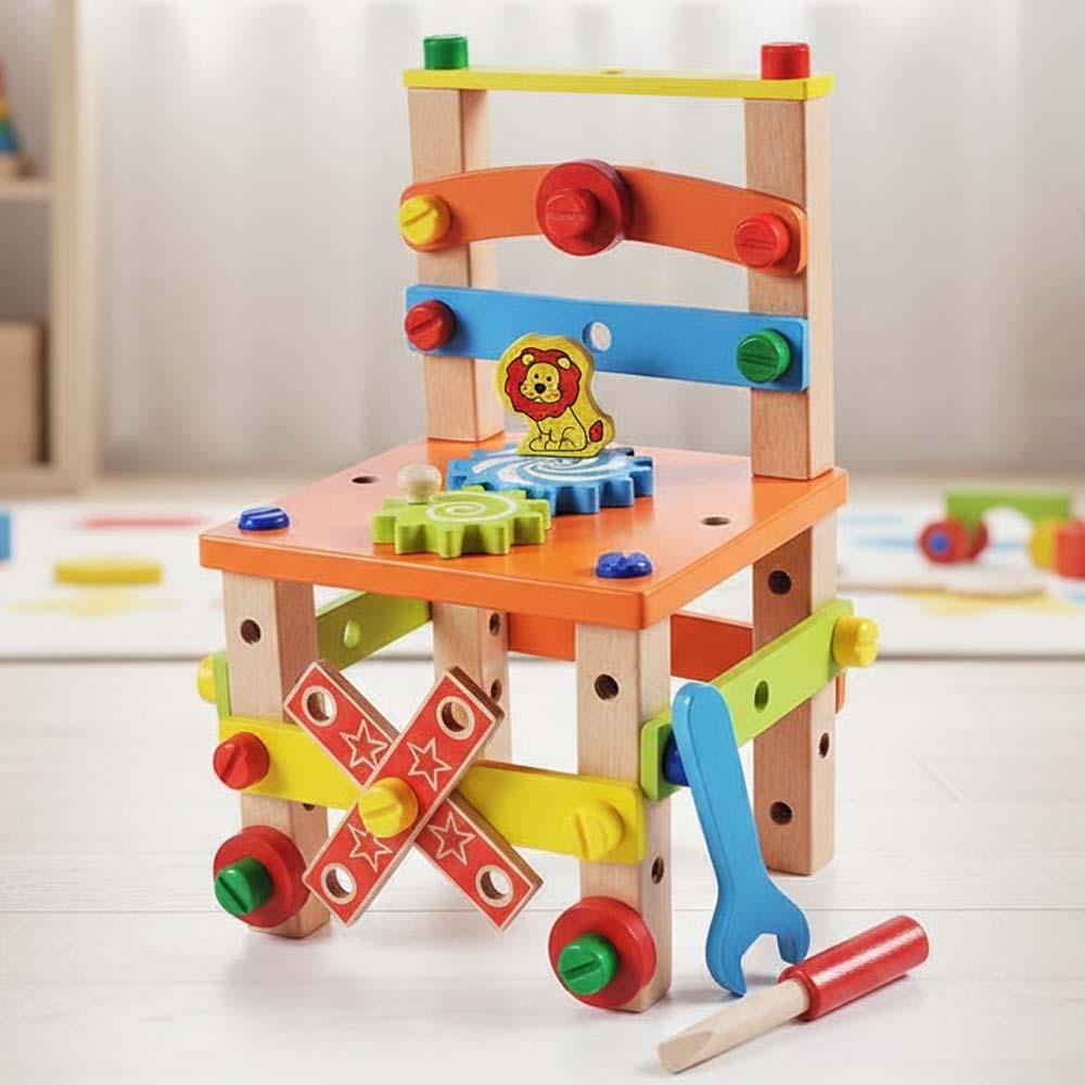 Nechajte vaše deti si postaviť drevenú stoličku. Touto hračkou sa im určite zavďačíte, a ešte ich aj niečo naučíte. Predovšetkým vo svojich malých majstroch pestujete manuálnu zručnosť. Šikovníci sa tiež precvičia v motorických vlastnostiach a kreativite. Zo stoličky možno totiž zložiť za pomoci drevených nástrojov nielen samotnú stoličku, ale aj iné hračky, tvary a podoby. Drevená vzdelávacia stolička tak ponúka množstvo využitia a variability.