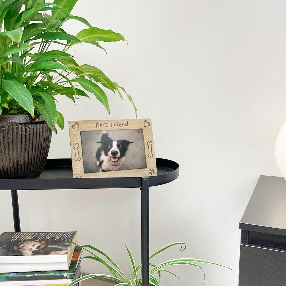 Fotorámik pre domáceho miláčika je viac než len doplnok do domácnosti – je to malé drevené poďakovanie za veľkú lásku. Elegantný a predsa srdečný, s gravírovaným nápisom "Best Friend", labkami, kostičkami a srdiečkami – tento rámik je ideálny pre fotografiu vášho chlpatého spoločníka, ktorý vám robí každý deň o niečo lepší.