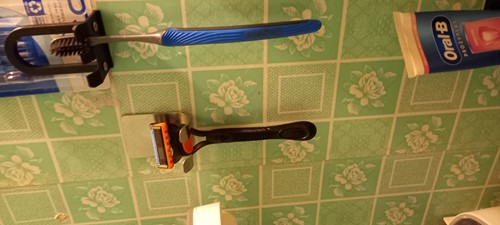 Ziletka ve vzduchu oschne a nehrozi poraneni jako kdyz je ve sklenici s jinymi veci. Spokojnost. Nalepeno v policce aby byl v suchu. Pevne lepidlo.