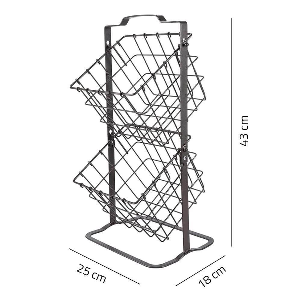 Dvojposchodový košík, ktorý sa vďaka svojmu modernému dizajnu bude skvelo vynímať v každej domácnosti. Hodí sa ako do kuchyne na rôzne ovocie či zeleninu, tak do kúpeľne na uskladnenie drogérie. Rovnako dobre poslúži aj v obývačke či izbe na uloženie kníh a drobných predmetov.