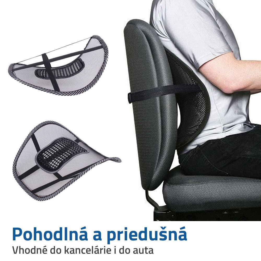 • Znižuje záťaž chrbtice Pomáha od bolesti chrbta a hlavy Podporuje správne sedenie Vhodná na akúkoľvek stoličku a do auta Sieťovaná tkanina - zabezpečuje vetranie miesta dotyku s chrbtom