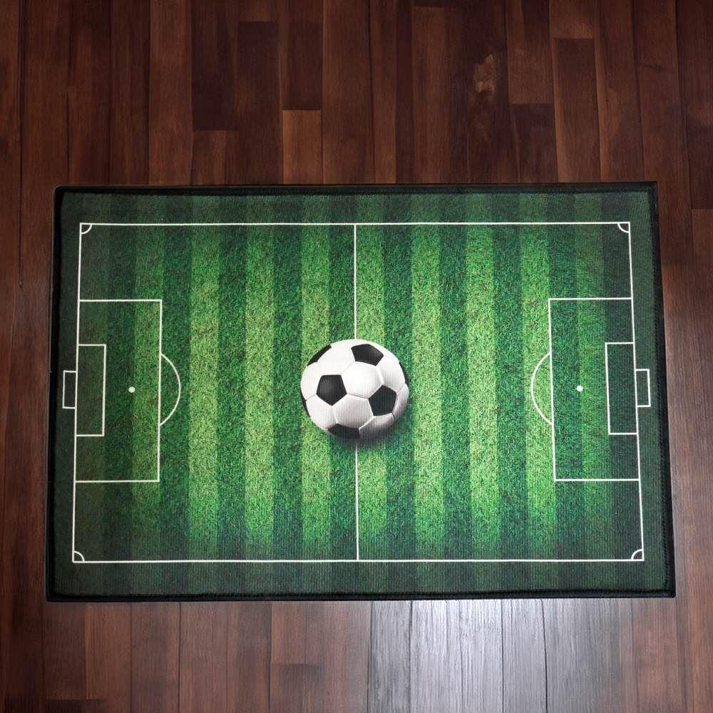 S týmto kobercom s motívom futbalového ihriska sa zaručene postaráte o prekvapenie! Skvele sa hodí ako do detskej izby, kde sa na ňom malý športovec iste vyhrá, tak aj do pracovne alebo pánskeho klubu, kde sa futbalové zápasy berú vážne.