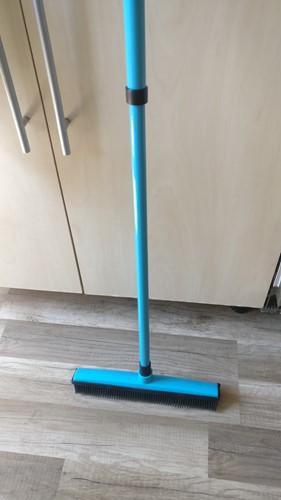 Koště dobře smete např. zvířecí chlupy s koberce a poněvadž antistatická vlastnost funguje, tak nezústanou na gumové ploše. Koště teleskopickou násadou je skladné - doporučuji.