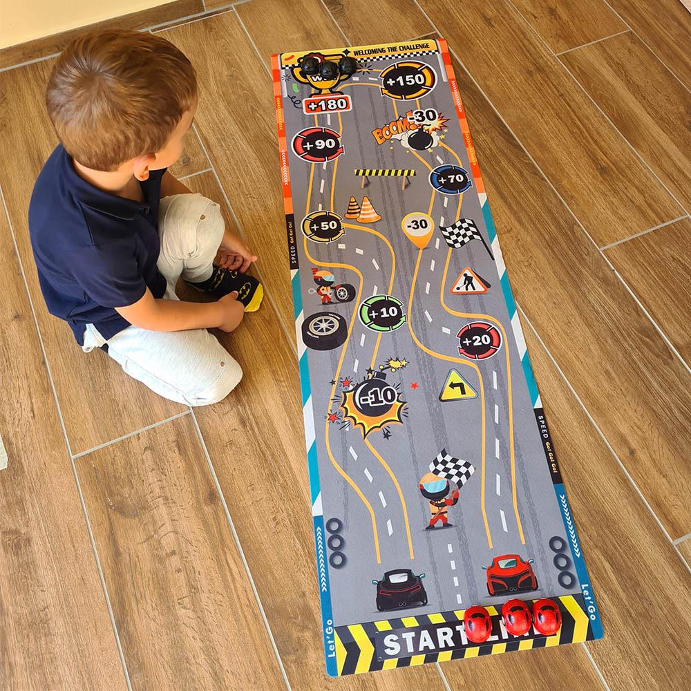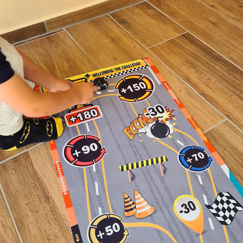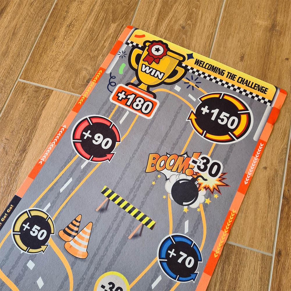 Táto hracia podložka nastolí v každej izbe adrenalínovú atmosféru. Deti si môžu samy alebo s kamarátmi skúšať presnosť streľby, zbierať body a baviť sa pri jednoduchej, ale chytľavej hre. Stačí si rozložiť podložku, pripraviť "puky" a mieriť na bodované polia. Podložka je mäkká, ľahko skladná a jednoducho prenosná, takže si ju môžete vziať na cesty, dovolenku alebo kamkoľvek na návštevu. Zahrajte si hru, ktorá sa podobá curlingu na detskej oslave alebo na detskom tábore. Kto získa najviac bodov a bude mať najlepší "ťah na bránku"?