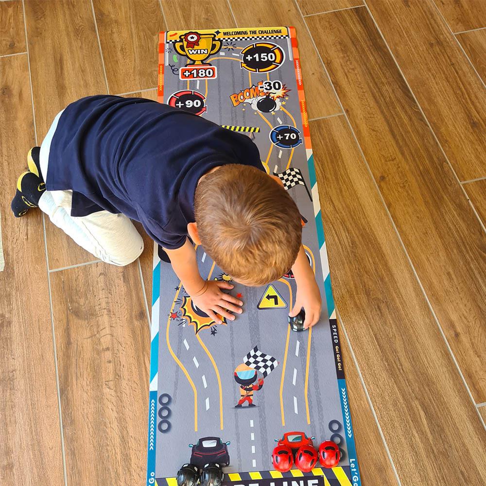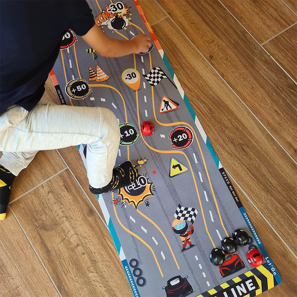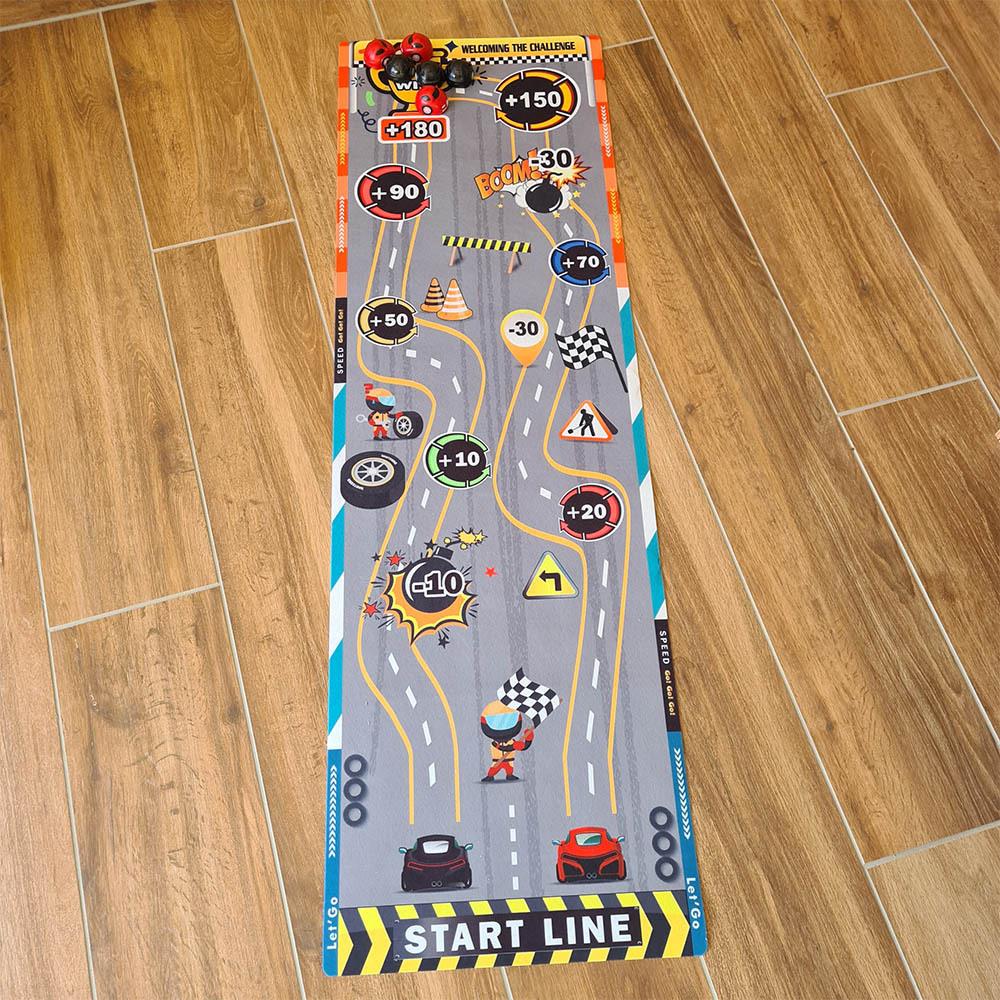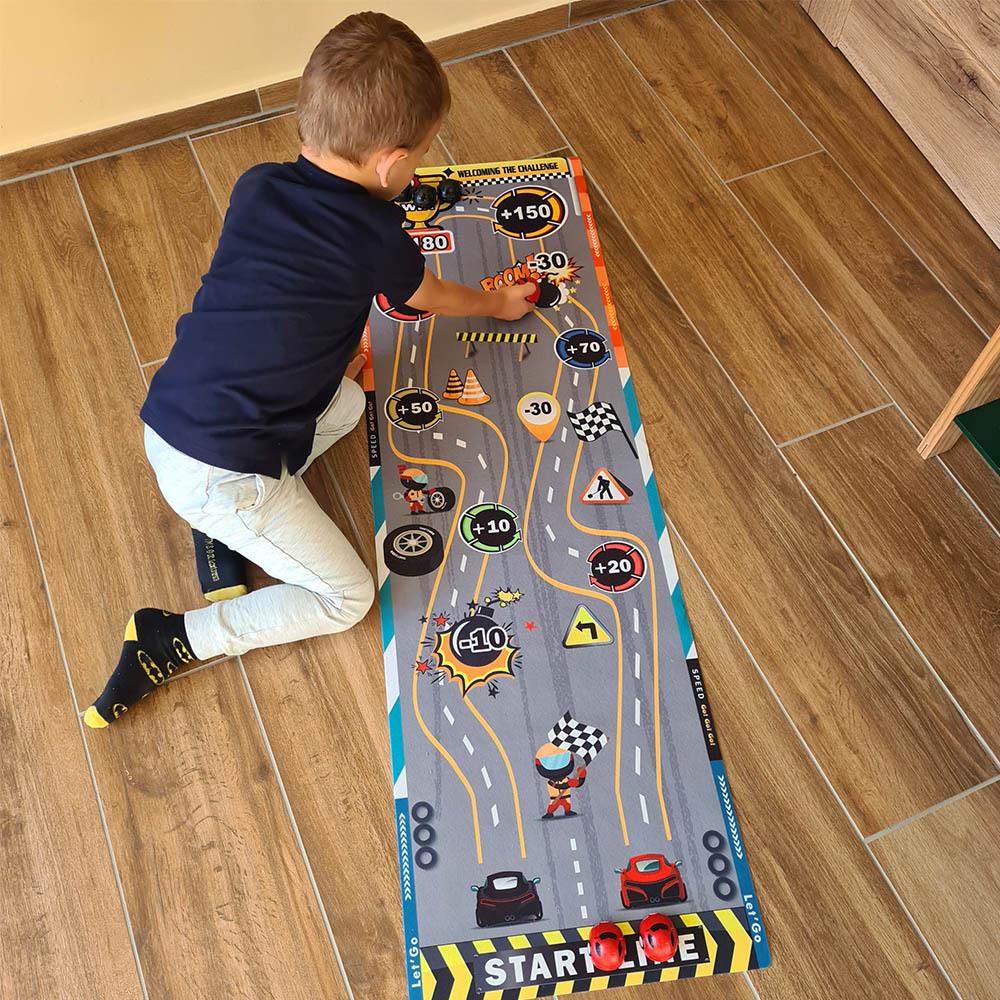 Táto hracia podložka nastolí v každej izbe adrenalínovú atmosféru. Deti si môžu samy alebo s kamarátmi skúšať presnosť streľby, zbierať body a baviť sa pri jednoduchej, ale chytľavej hre. Stačí si rozložiť podložku, pripraviť "puky" a mieriť na bodované polia. Podložka je mäkká, ľahko skladná a jednoducho prenosná, takže si ju môžete vziať na cesty, dovolenku alebo kamkoľvek na návštevu. Zahrajte si hru, ktorá sa podobá curlingu na detskej oslave alebo na detskom tábore. Kto získa najviac bodov a bude mať najlepší "ťah na bránku"?