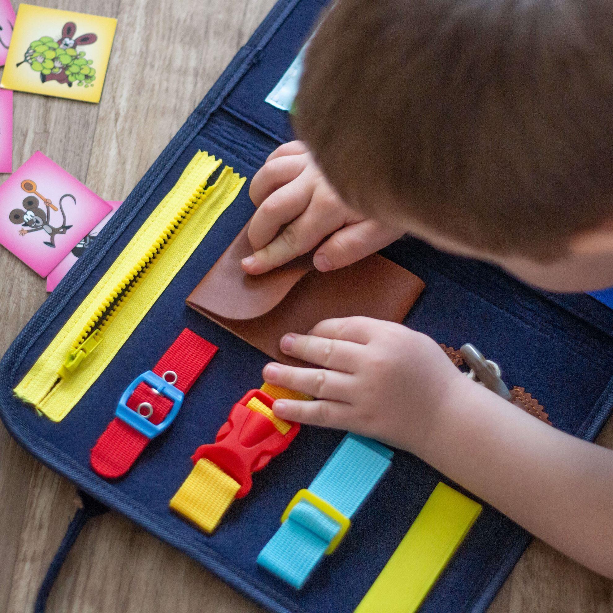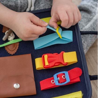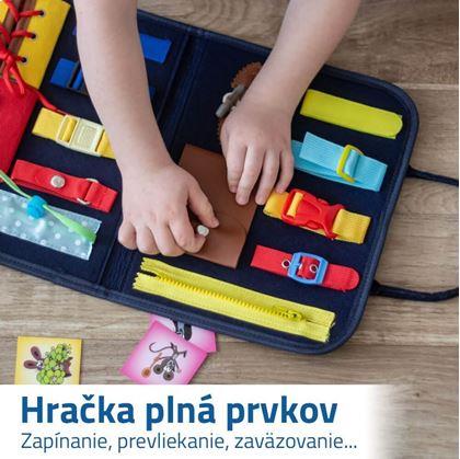 Deti rady skúšajú nové veci, siahajú na neznáme predmety a zlepšujú tým tak svoju jemnú motoriku. Okrem obyčajných hračiek ich často oveľa viac zaujímajú veci z bežného života, ktoré vidia u dospelých - zipsy, zámky, kľúče a podobne. Pre takéto zvedavé deti sú motorické hračky ideálnou pomôckou, ako sa zabaviť a zároveň cielene precvičiť zručnosti, ktoré sa im budú v blízkej dobe hodiť napríklad v škôlke. Vďaka tejto hračke zdatne zvládnu napríklad zapínanie bundy, zaväzovanie šnúrok, zapínanie cvočkov, gombíkov či pásky.