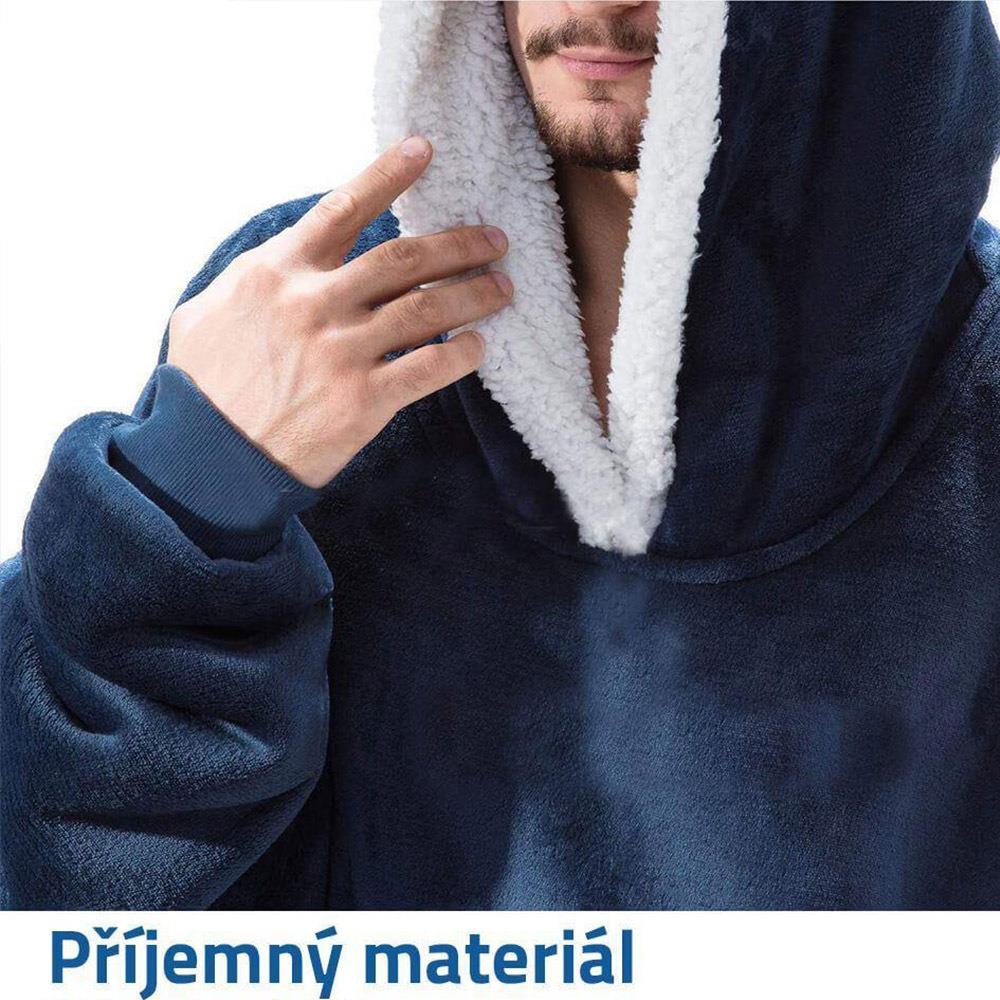 Hrejivá mikinová deka zohreje aj tých najväčších zmrzlíkov. Oveľa lepšie ako klasická deka. Táto deka je v dizajne mikiny. Je vyrobená z veľmi príjemného materiálu, ktorý je mäkký a hrejivý. Poskytuje pohodlie, relaxáciu a oddych. S touto dekou sa budete aj oveľa lepšie pohybovať. Navyše ju môžete využívať nielen doma, ale aj napríklad v práci počas chladnejších dní.