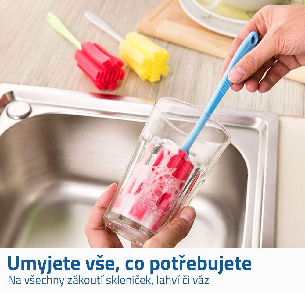 Umývanie riadu môžete posunúť na vyššiu úroveň vďaka týmto hubkám s rukoväťou. Často sa stane, že klasickou hubkou neumyjete všetko, čo potrebujete. Pomocou hubky na čistenie pohárov sa dostanete aj na ťažko dostupné miesta.