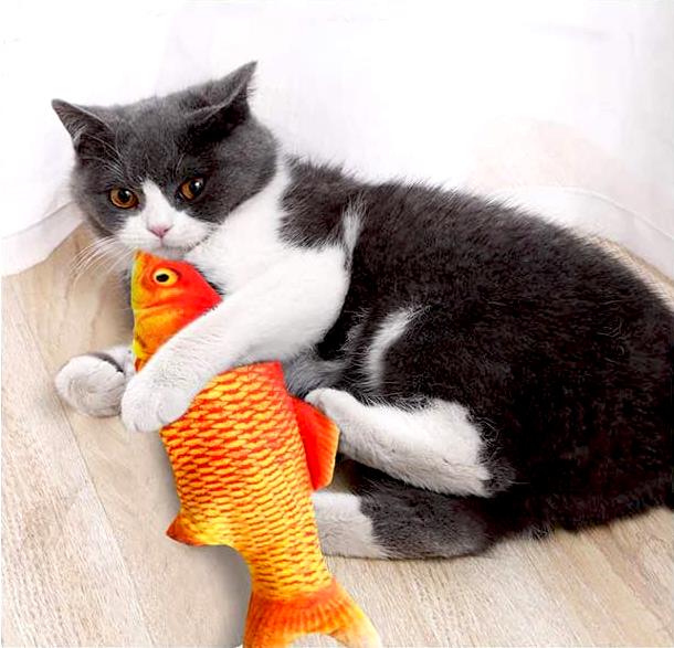 Hračka pre mačky v podobe ryby vzbudí u mačiek veľkú pozornosť. Ryba totiž vyzerá ako skutočná, a to dodáva na atraktivite. Súčasťou balenia je sáčok s mačacou mätou. Ak ho vložíte do ryby, už sa od nej mačka nepohne. Uprostred brucha ryby sa nachádza zips, do ktorého možno sáčok vložiť a kde sa tiež nachádza ovládanie ON/OFF.