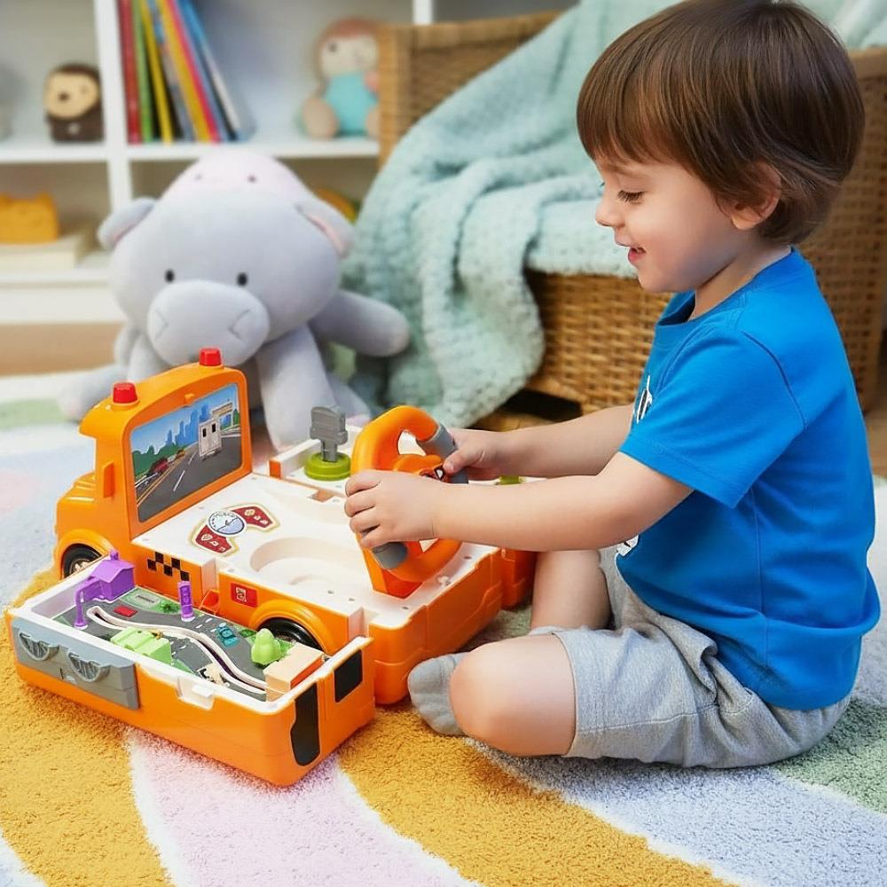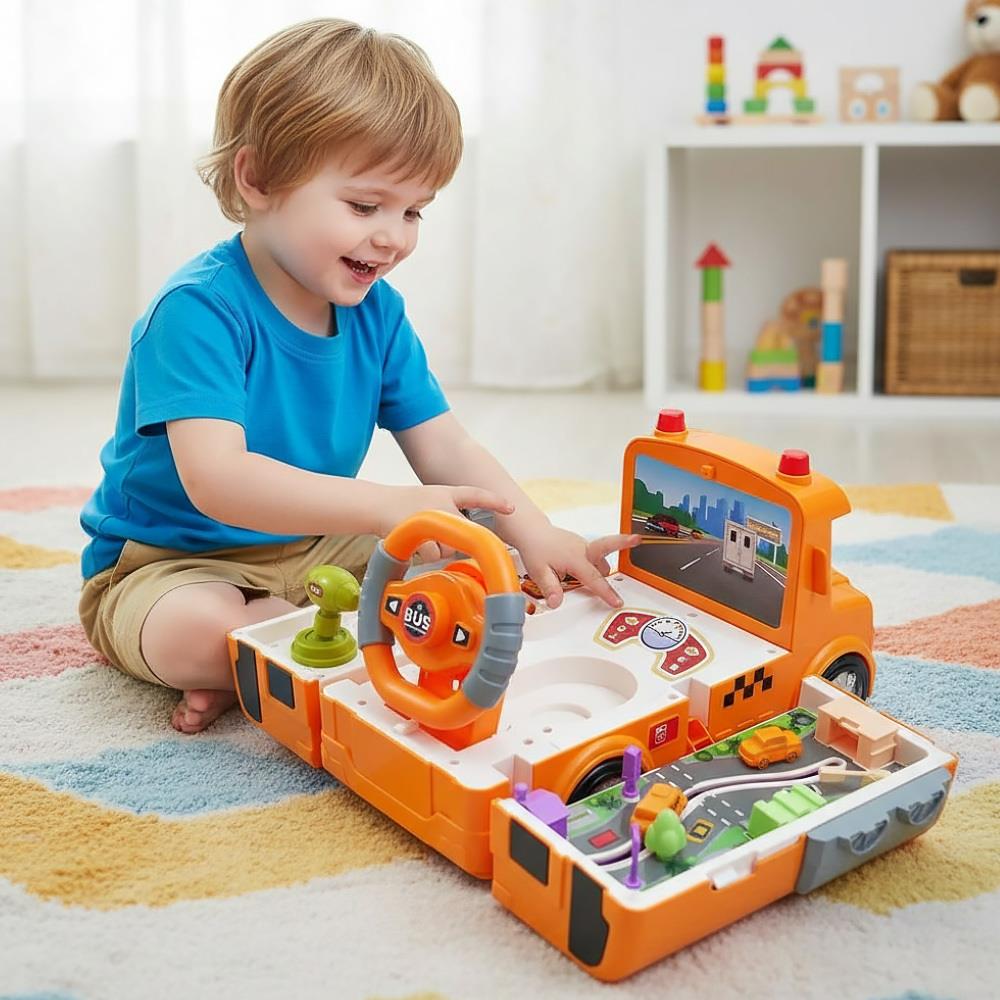 Vydejte se so svojou ratolesťou po stopách vodičov autobusu, nech si vyskúša, aké to je, keď dostanete za úlohu prepraviť pasažierov na zastávky, aby bezpečne dorazili do práce, školy či domov. S týmto interaktívnym autobusom sa z klasického hrania stáva aj zábava, ktorá rozvíja predstavivosť. Okrem toho, že autobus funguje ako klasické autíčko na hranie, sa s ním dá simulovať jazda. Po rozložení sa z neho teda stáva malý trenažér, na ktorom si deti vyskúšajú okrem štartovania kľúčom aj radenie a samozrejme aj riadenie volantom sprevádzané zvukovými efektmi
