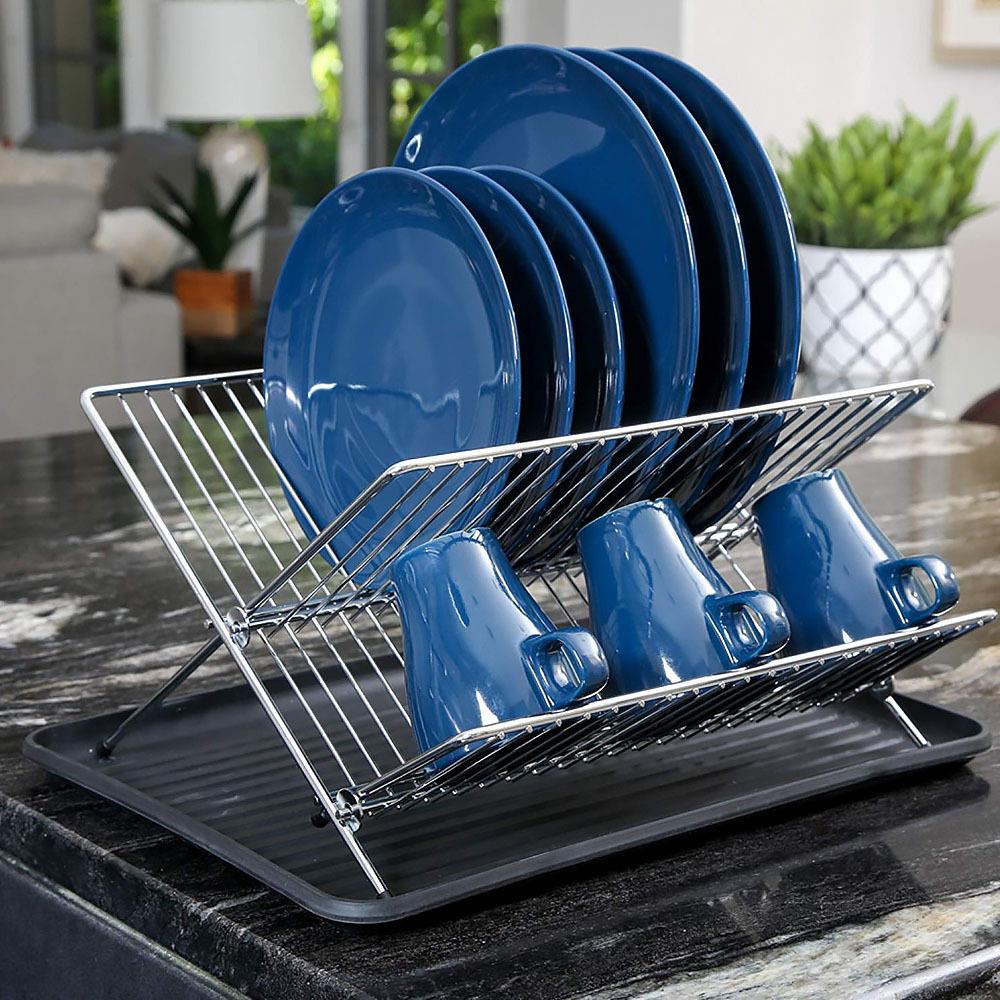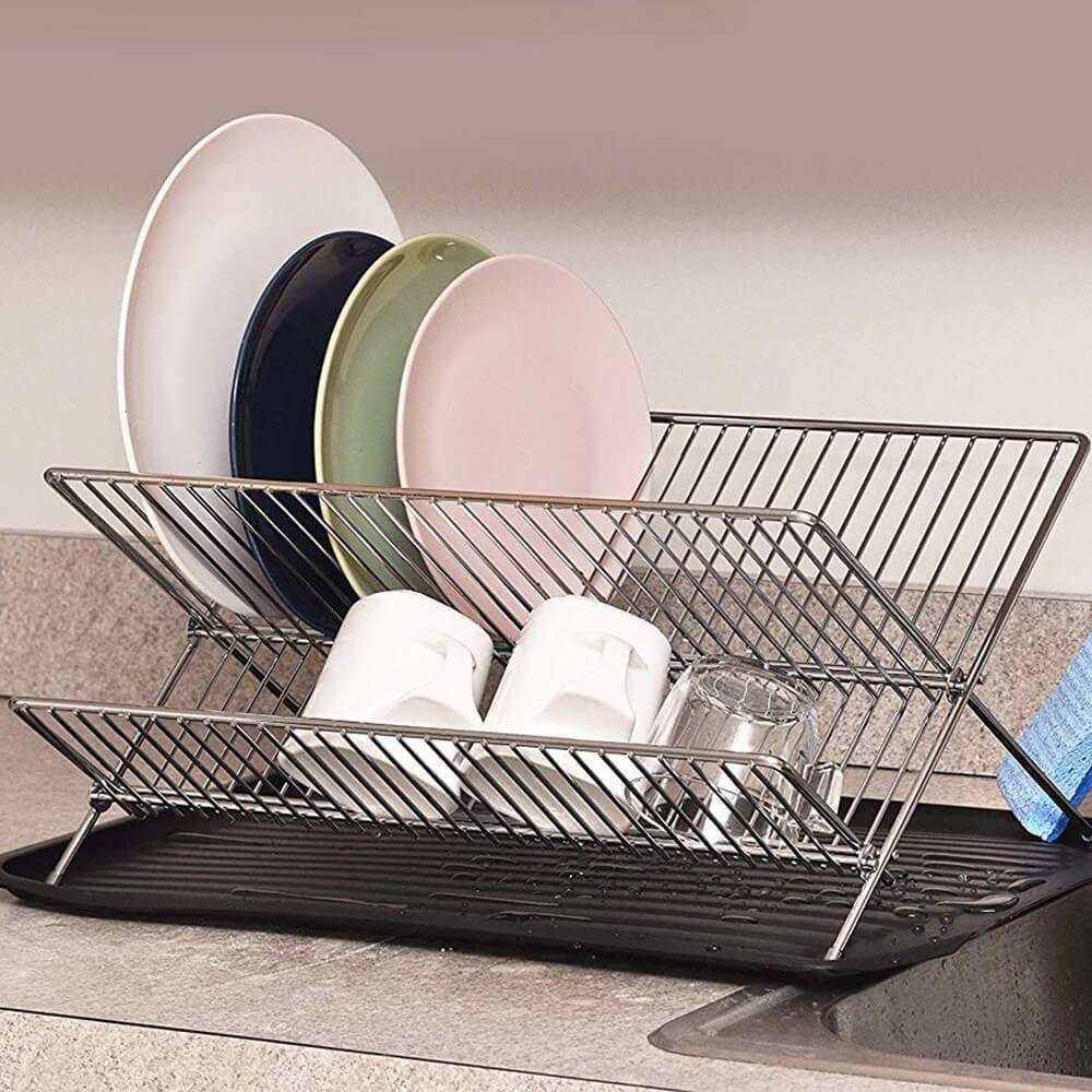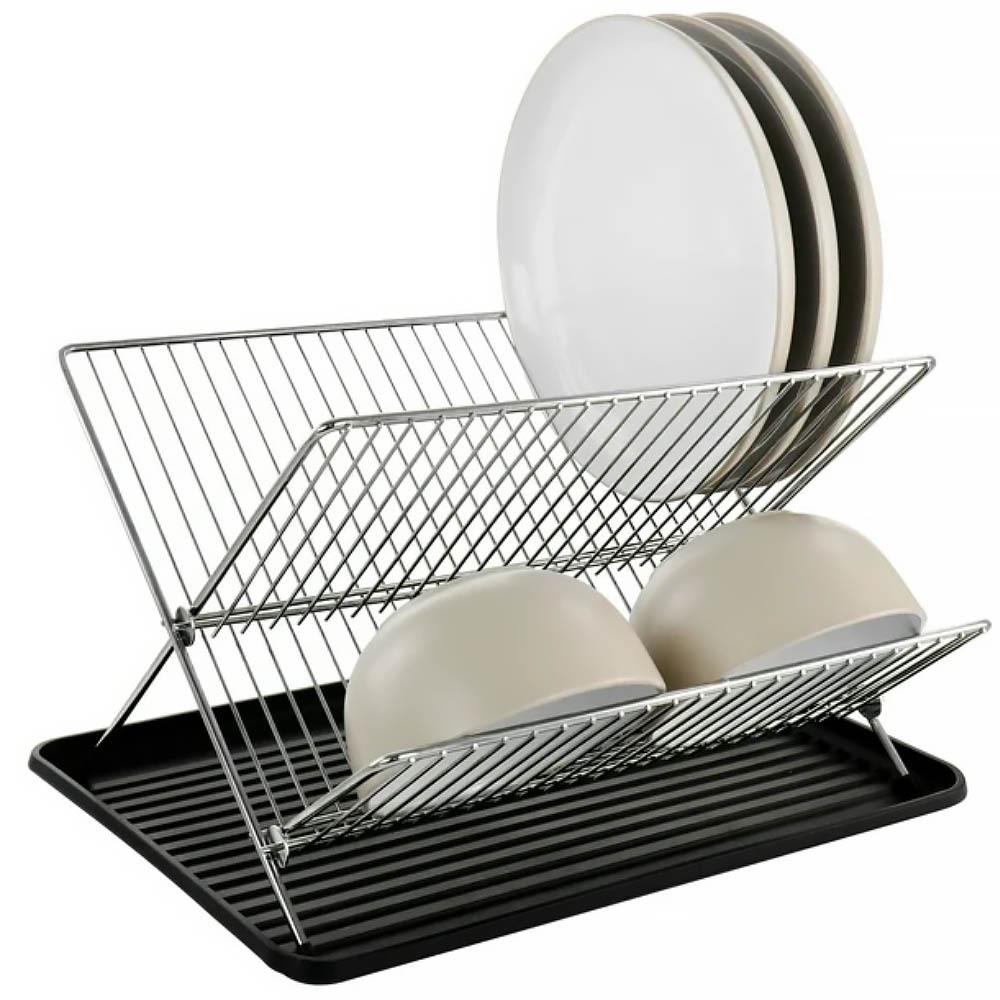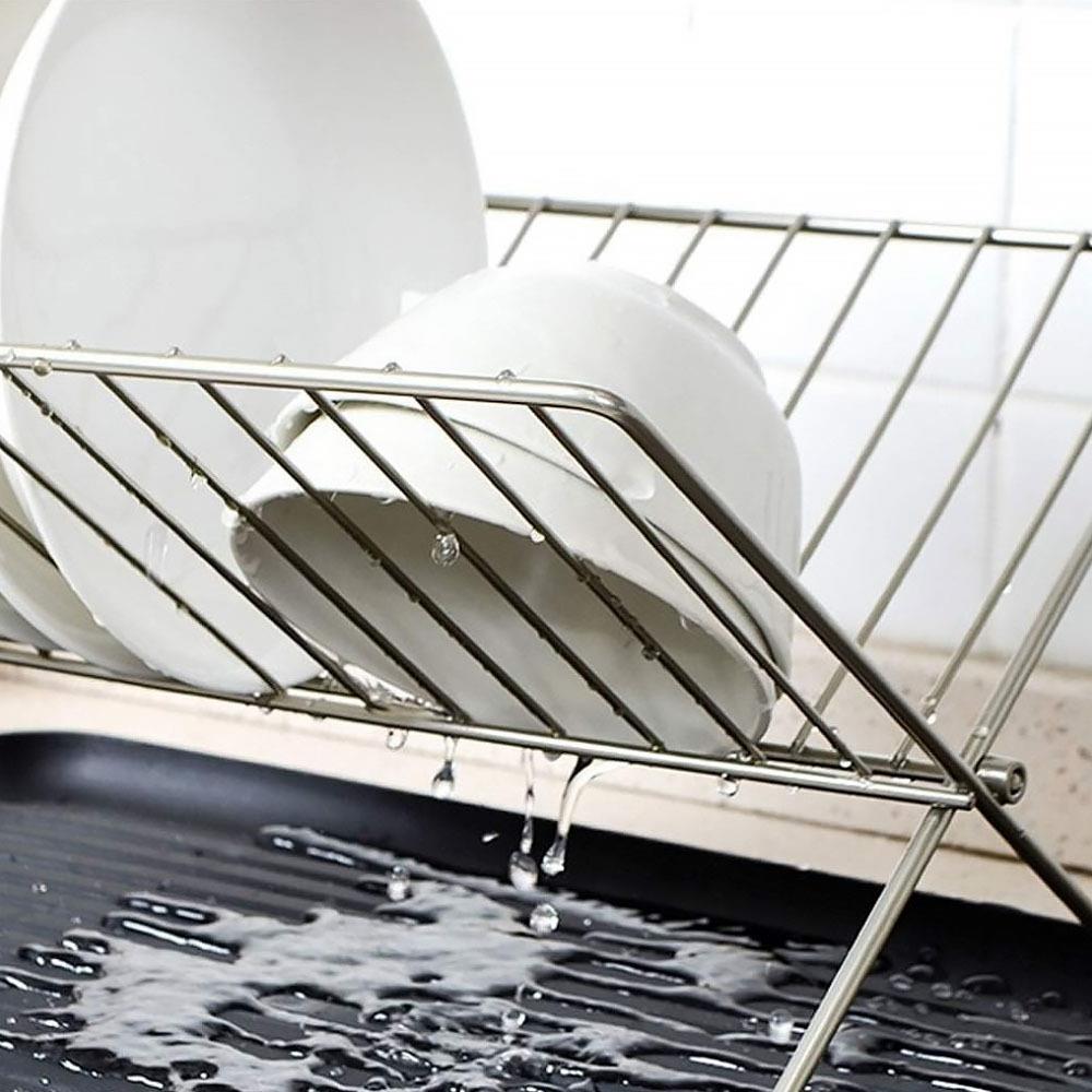 Umývanie riadu je každodenná činnosť, ktorá mnohých z nás síce nebaví, ale je potrebné ju vykonať, aby sa nám v dreze nekopili kopy tanierov a hrnčekov a kuchyňa zostávala príjemným miestom, kde sa tvoria nielen skvelé chute, ale aj dobrá nálada. My pre vás máme alternatívu v podobe tohto kovového odkvapkávača s plastovým táckom, ktorý je nielen skladný vďaka svojmu skladaciemu dizajnu, ale aj praktickejší na údržbu, pretože nerez prirodzene odpudzuje nečistoty, ktoré na nej na rozdiel od plastu tak veľmi neulpievajú.
