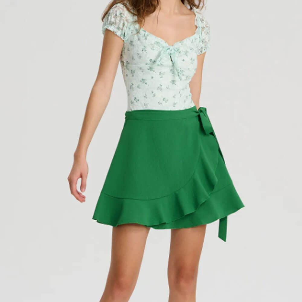 Krátka zavinovacia sukňa je módny kúsok, ktorý nestarne. Pri triedení šatníka túto letnú klasiku nikdy nevyhodíte. Zavinovacia sukňa je na rozdiel od klasickej zavinovačky obohatená o volániky. Blysnete sa tak s nevšednou a šik kombináciou. Či už vyrazíte do práce, do mesta alebo na dovolenku k moru, budete sa cítiť sexy a sebavedome. Ale hlavne pohodlne!