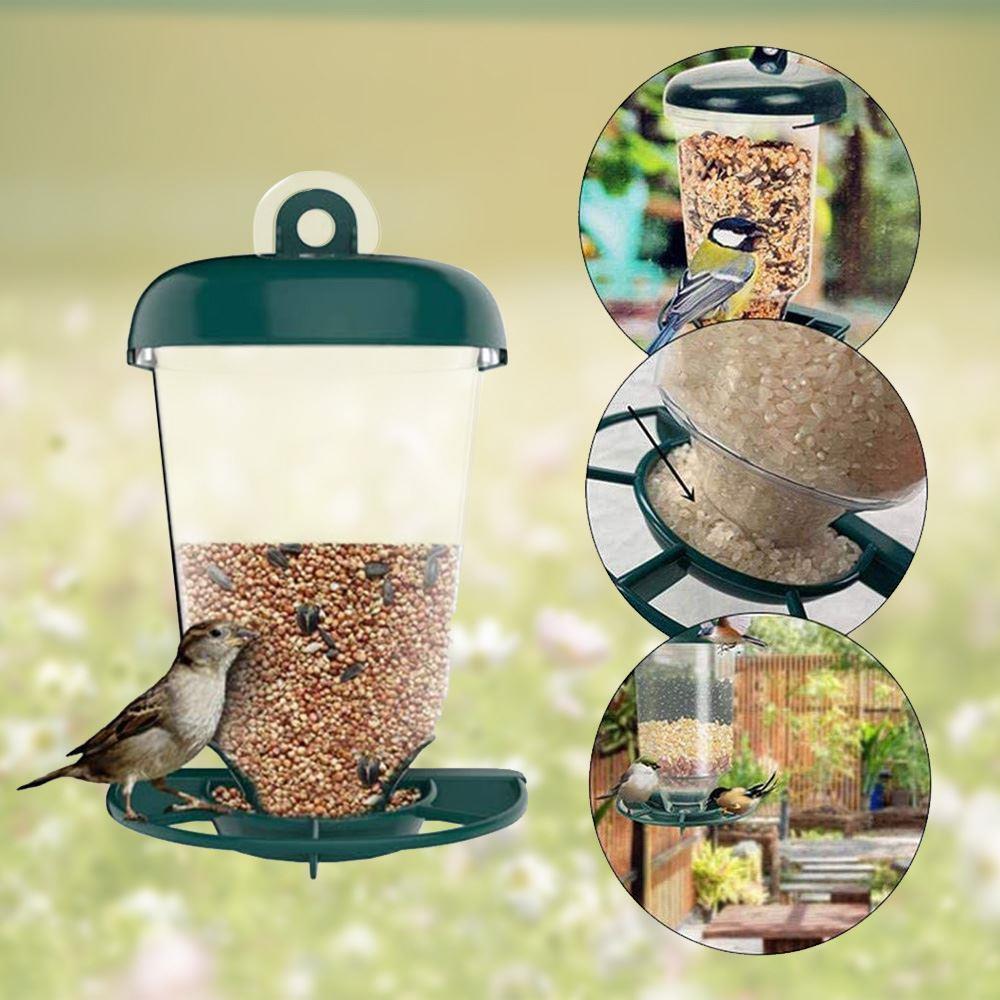 Krmítko je dosti velké a snadno se s ním manipuluje, je v zelené barvě, takže do zahrady zapadne.