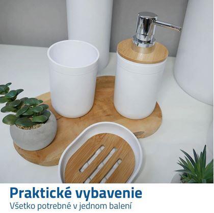 Kombinácia bielej farby s drevom sa hodí do každej kúpeľne. Nadčasový dizajn doplnkov Vás neprestane baviť.