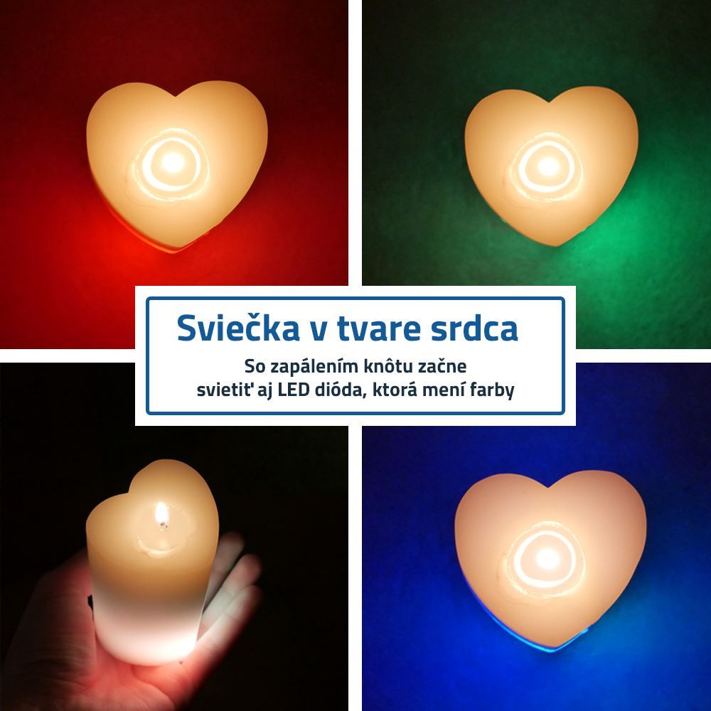 Pri zapálení knôtu sa aktivujú LED diódy, ktoré spôsobujú striedanie farieb a sviečka vytvára úplne dychberúce predstavenie. Každú miestnosť doslova rozžiari. Naviac má veľmi príjemné a upokojujúce schopnosti. Sviečka v tvare srdca je tiež veľmi krásnym darčekom. Zaručene urobí radosť každej žene.