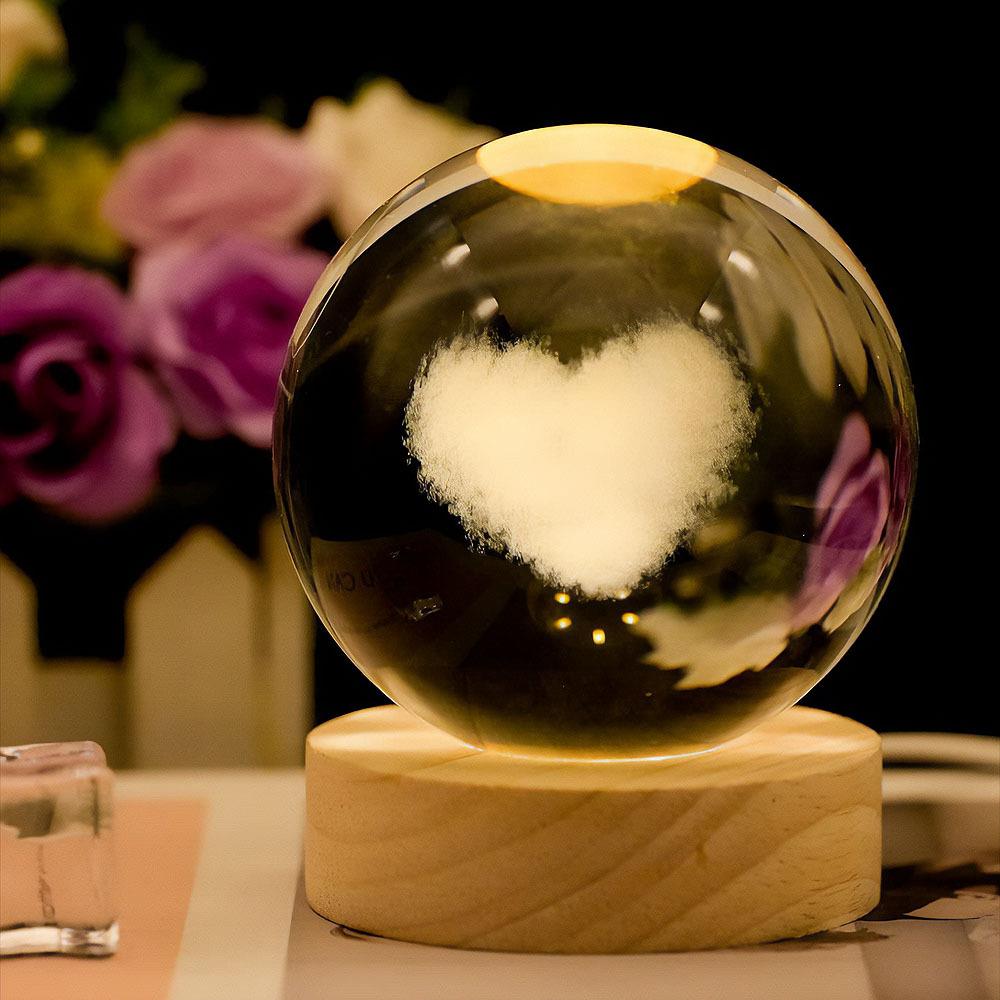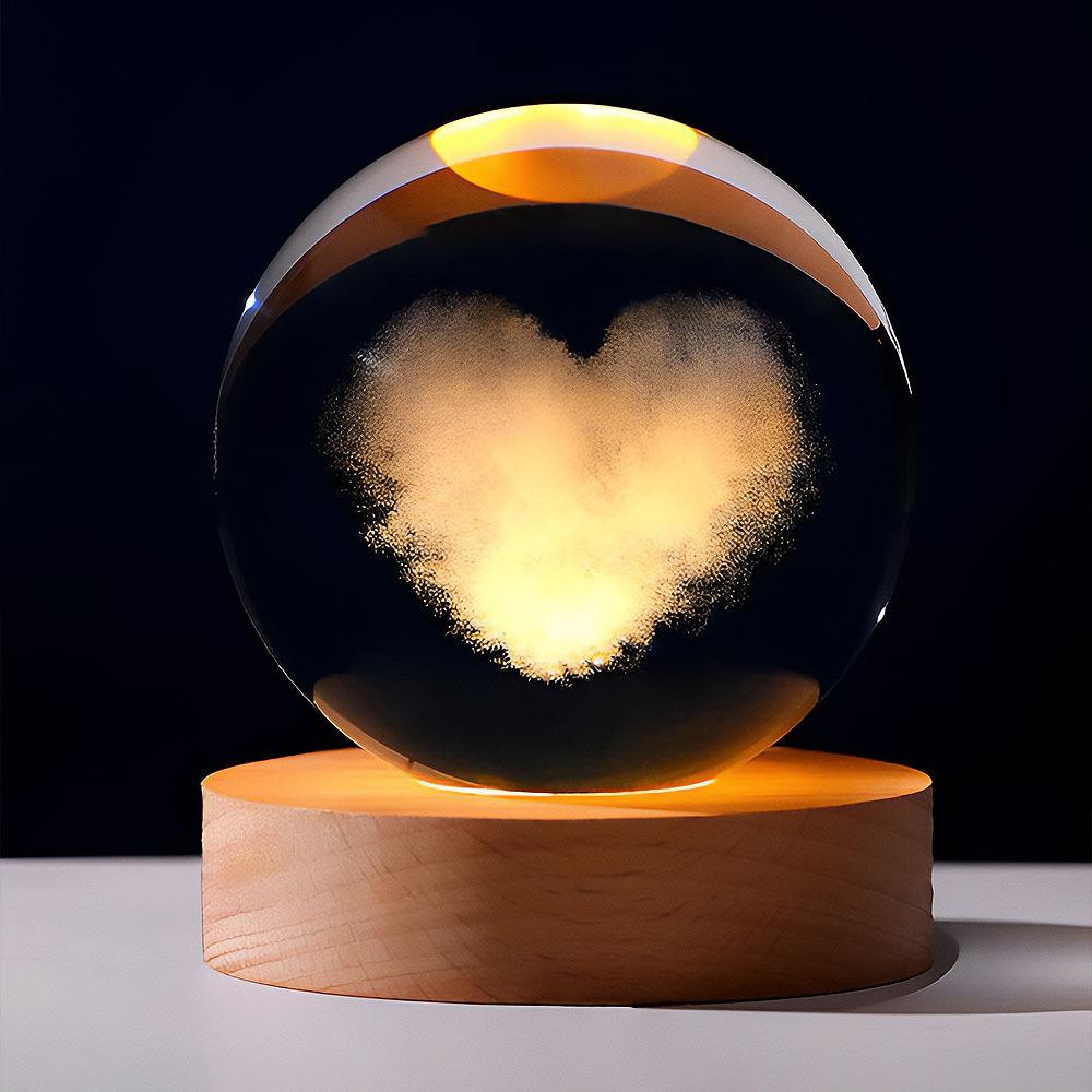 LED svietiaca sklenená guľa - srdce