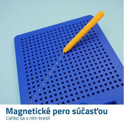 Magnetická kresliaca tabuľka je šikovná vec, ktorá zabaví deti na dlhé hodiny a zároveň podporí ich kreativitu. Stačí vziať priložené pero a začať kúzliť – keď ním prejdete po tabuľke, vyskočia magnetické gulôčky a vykreslia váš obrázok. Deti si ľahko osvoja písanie písmen, číslic alebo sa len tak hrajú s tvarmi a obrázkami.