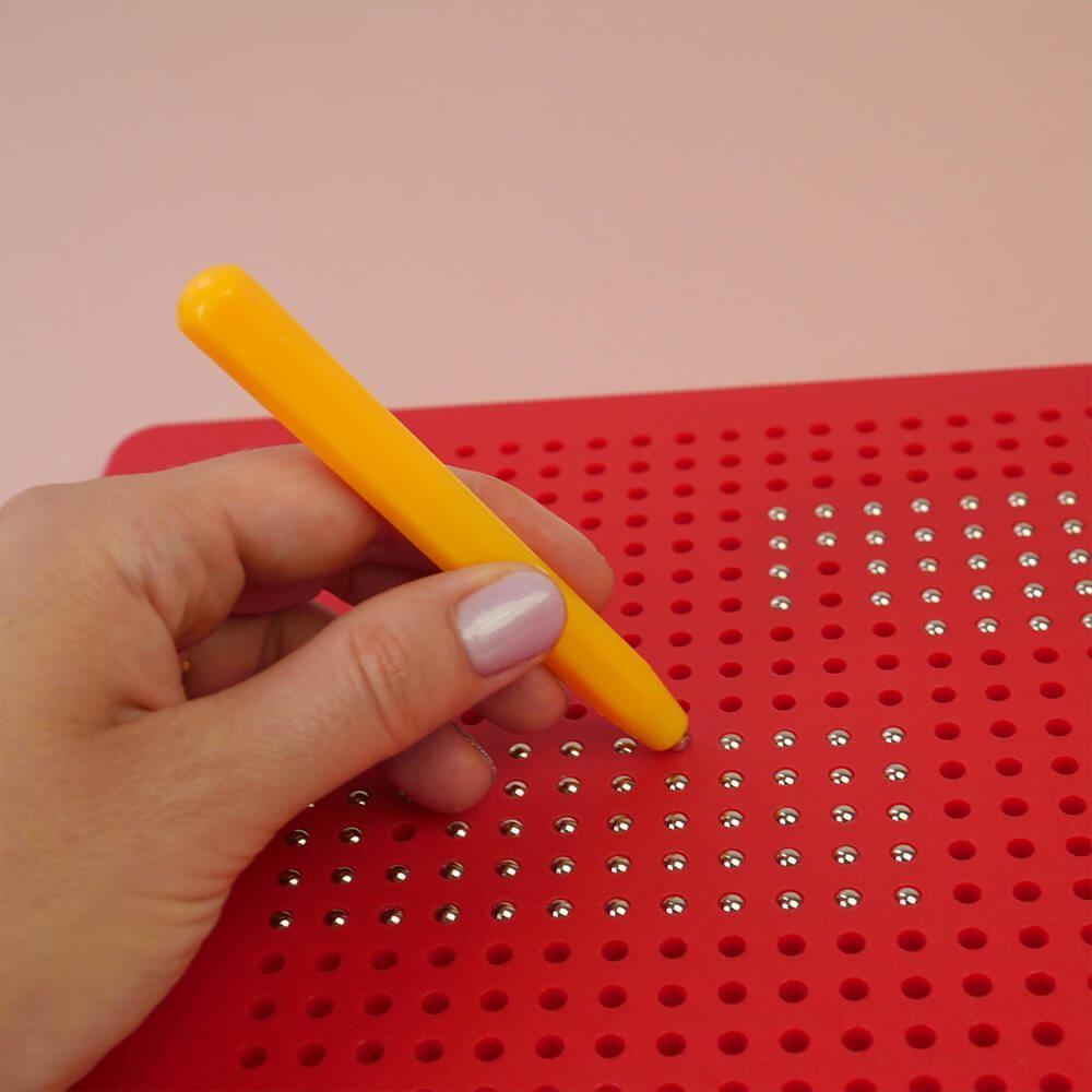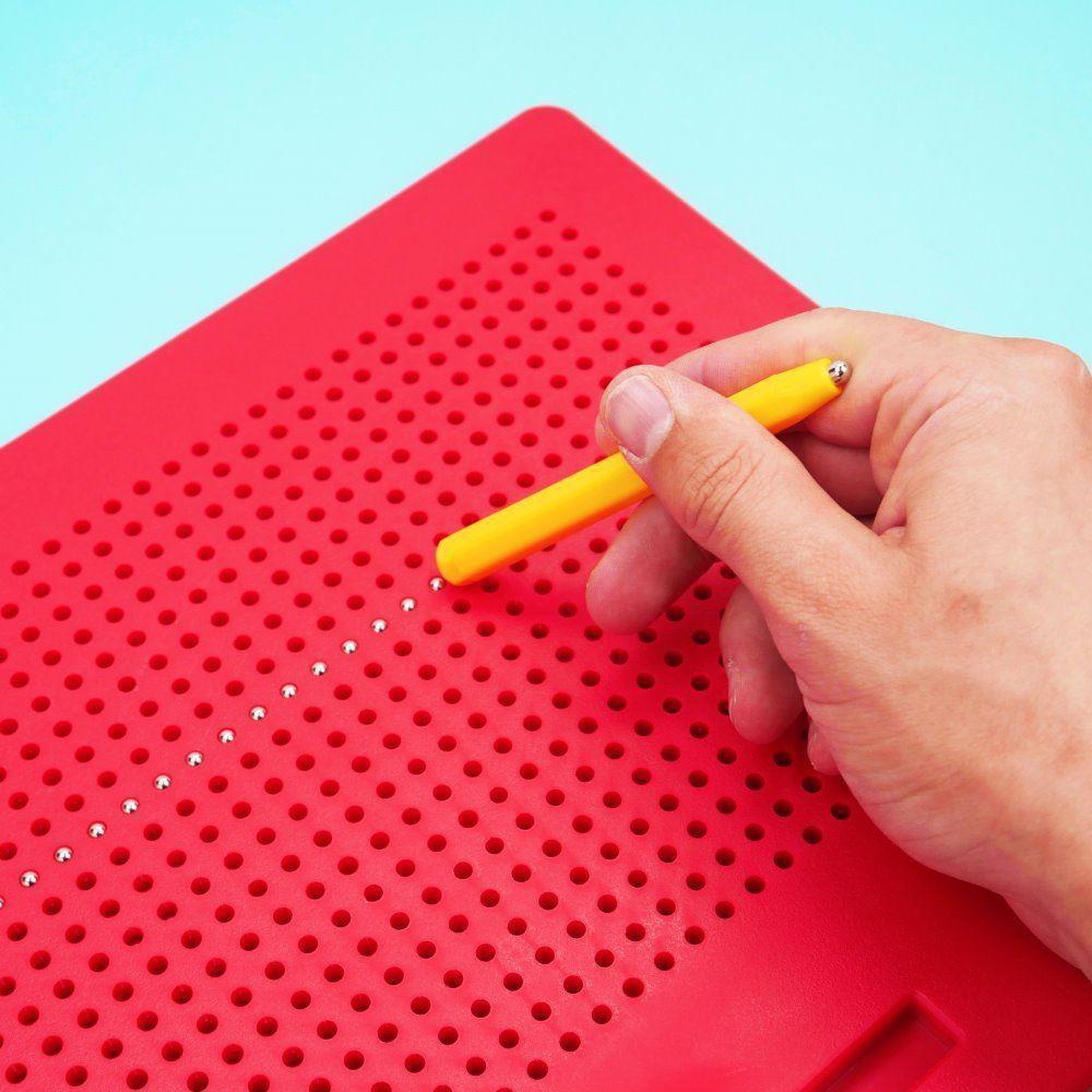 Magnetická kresliaca tabuľka je šikovná vec, ktorá zabaví deti na dlhé hodiny a zároveň podporí ich kreativitu. Stačí vziať priložené pero a začať kúzliť – keď ním prejdete po tabuľke, vyskočia magnetické gulôčky a vykreslia váš obrázok. Deti si ľahko osvoja písanie písmen, číslic alebo sa len tak hrajú s tvarmi a obrázkami.