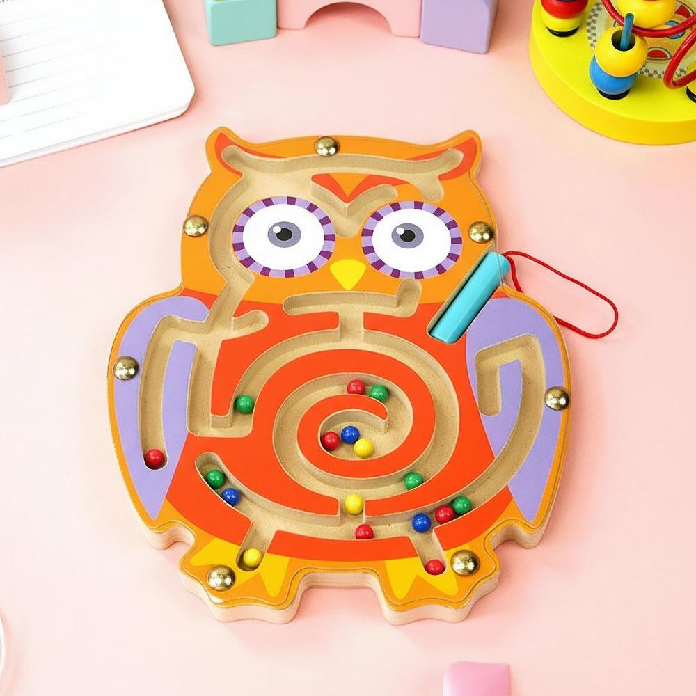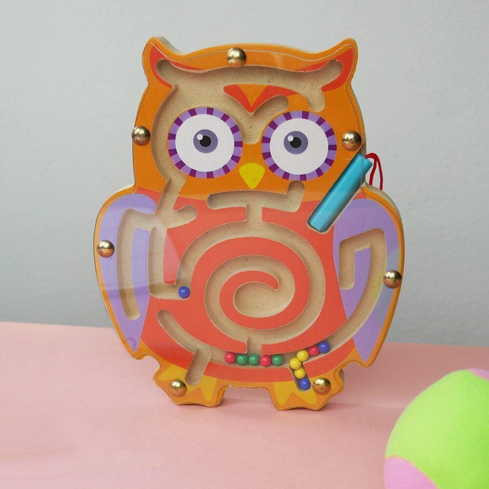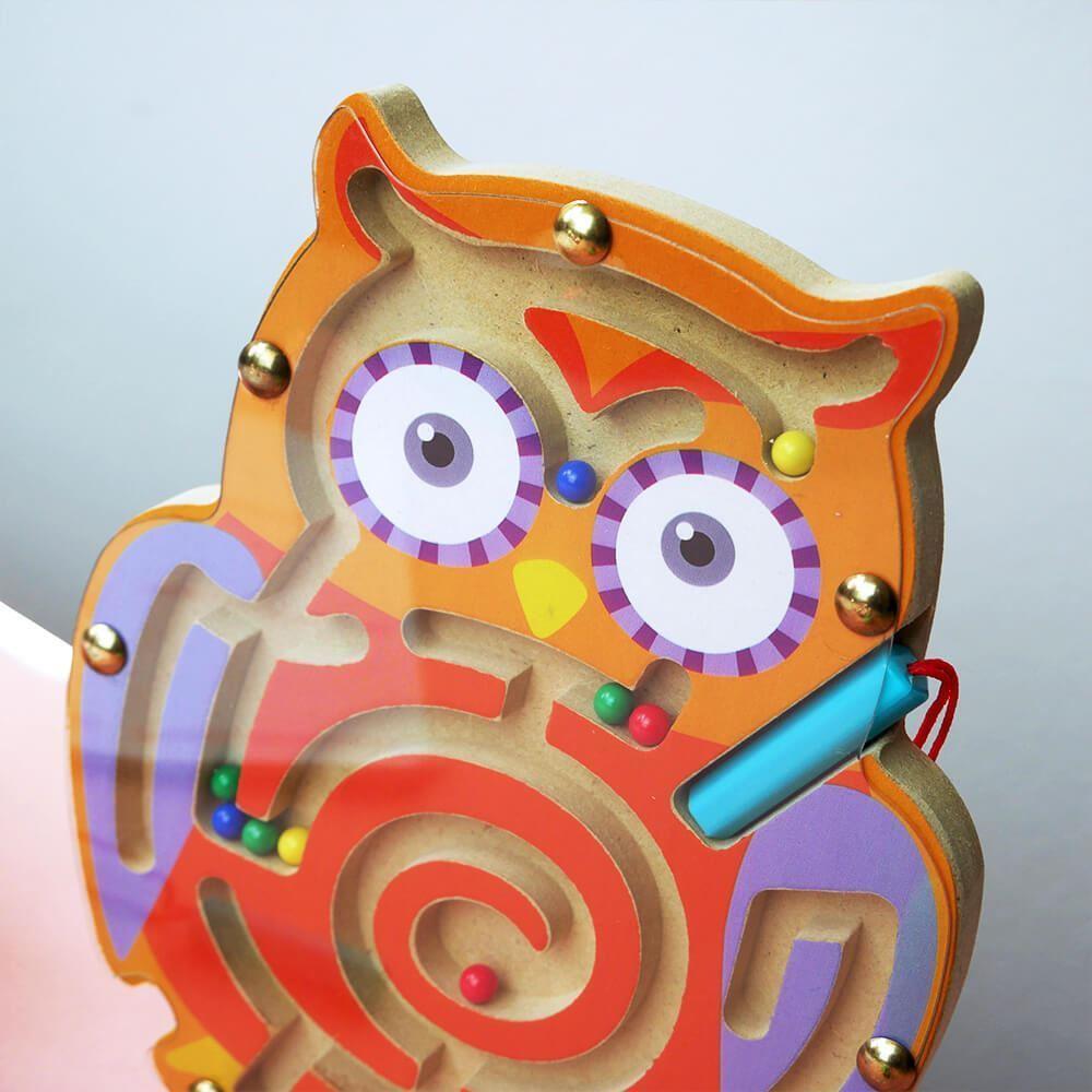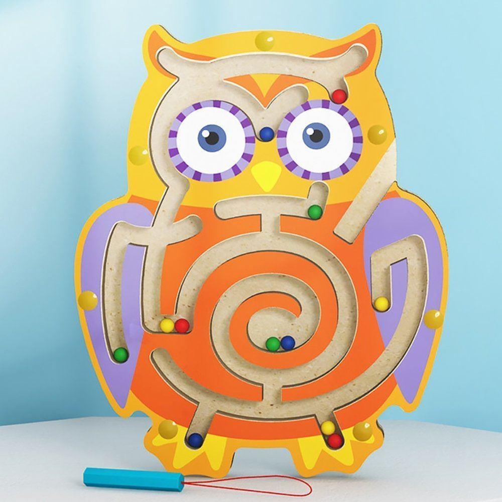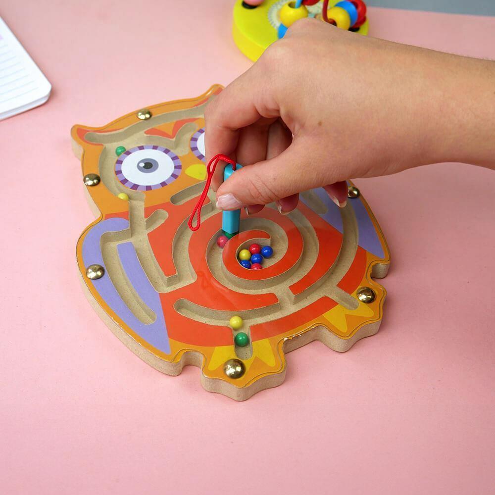 Magnetické bludisko je perfektný hlavolam pre deti. Je vyrobené v dizajne veselého zvieratka a hrá doslova všetkými farbami. Vaše deti zaujme na prvý pohľad! Zábava sa však pri hre ešte len začína! Deti sa snažia pomocou magnetického pera posúvať guľôčky v bludisku. Pri hre si rozvíjajú motorické schopnosti a logické myslenie. Pravidlá hry si môžete určiť sami. Buď môžete guľôčky triediť podľa farieb alebo ich môžete presúvať v čase. Presúvaním guľôčok rôznymi spôsobmi sa učia riešiť problém a správne sa sústrediť. A to všetko bez dlhého núkania a mučenia! Pomôžte svojim deťom pekne rozprúdiť mozgové závity a precvičiť ich šikovné ruky! Detské ruky ocenia drevený materiál, ktorý dodáva labyrintu prírodný charakter.