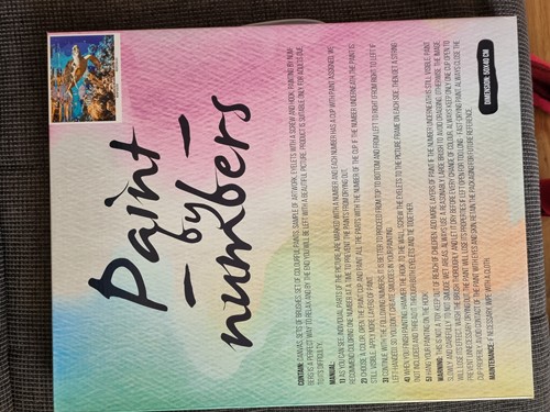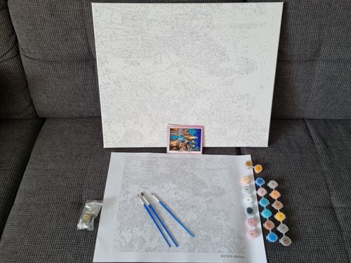 V balení je sada štetcov, niekoľko farieb, plátno s rámom a háčiky so skrutkami, ktoré slúžia na zavesenie obrazu na stenu. Obraz na plátne je rozdelený na jednotlivé časti, ktoré sú očíslované. Sada farieb je tiež očíslovaná. Stačí teda maľovať obraz zodpovedajúcou farbou. Bude to skvelá zábava. Namaľovaným obrazom si potom môžete vyzdobiť akúkoľvek miestnosť.