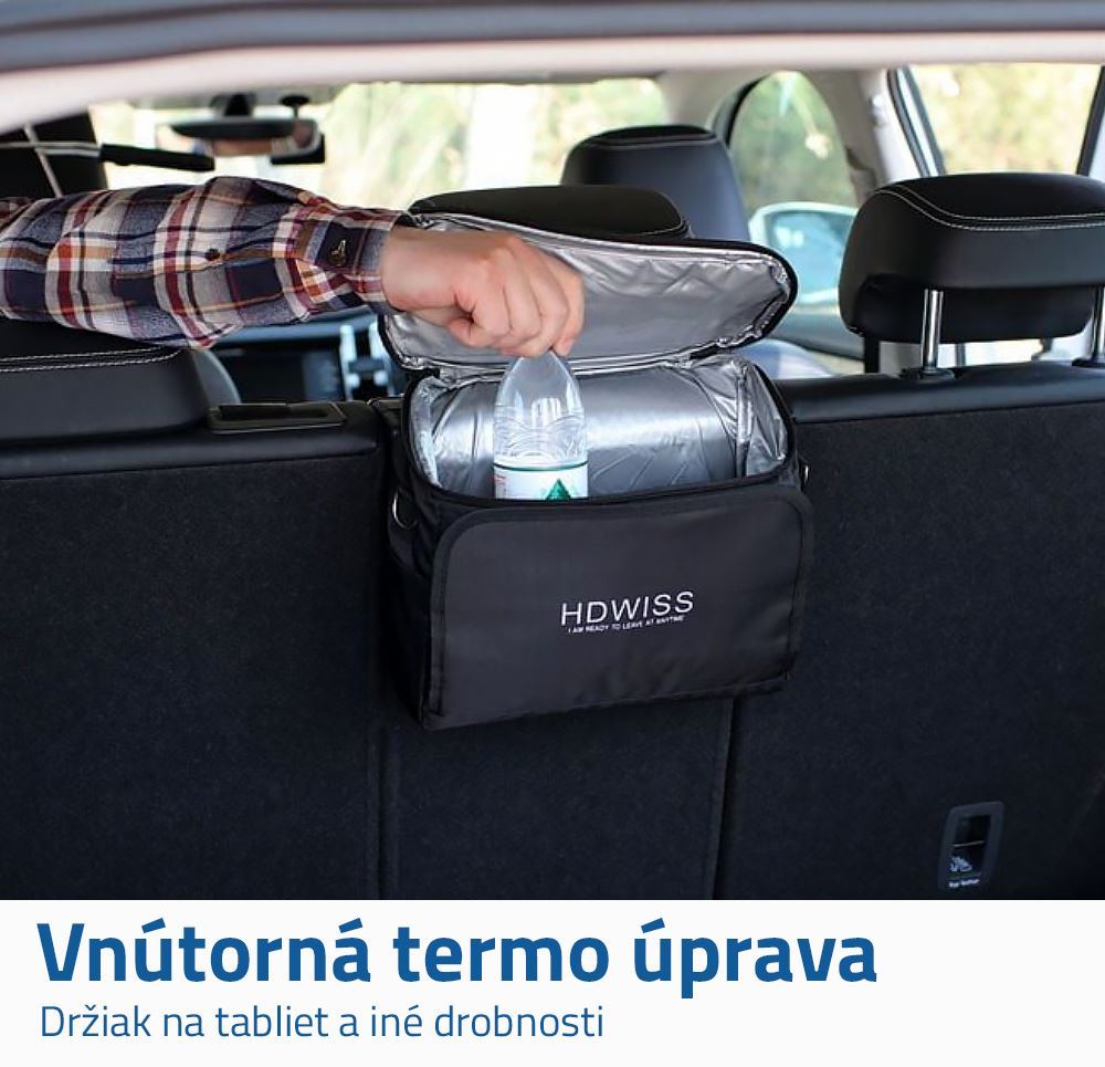 Multifunkčná taška do auta s izolačnou vrstvou udrží vaše potraviny v teple alebo v chlade. Pohodlne sa prenáša vďaka rukoväti či popruhu na rameno, ktorého dĺžku si môžete upraviť podľa svojich potrieb. Tašku využijete aj ako veľmi praktický držiak drobností v aute. Po odklopení vonkajšieho vrecka možno do transparentnej fólie uschovať napríklad tablet. Pohodlne môžete sledovať film a skrátiť si tak dlhú chvíľu pri cestovaní.