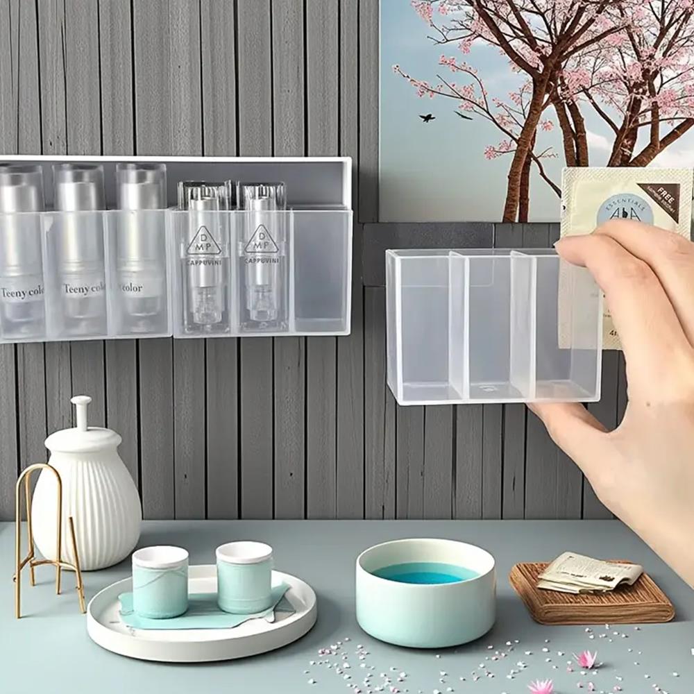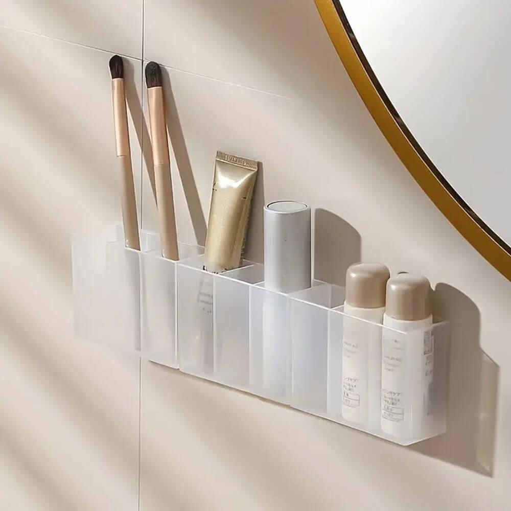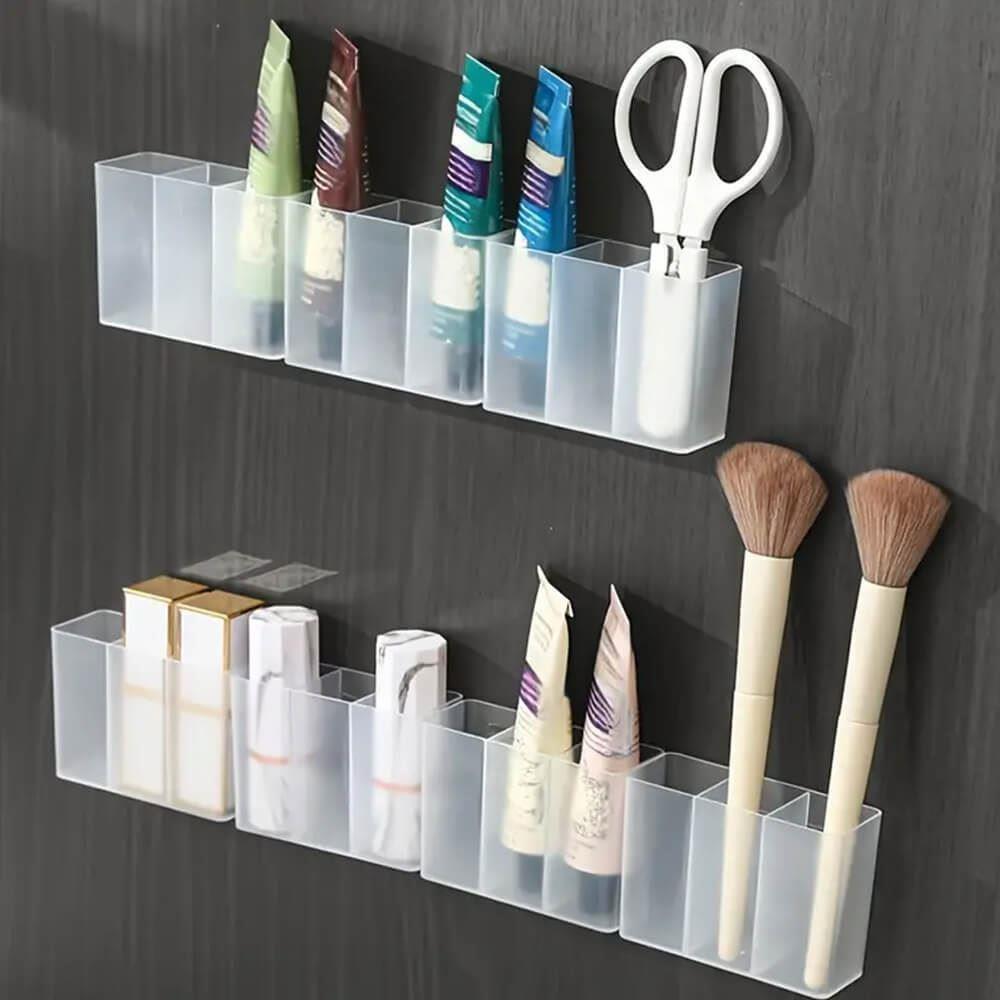 Organizér nalepíte pomocou obojstranných pások na stenu, dlažbu či na dvere skríň z vonkajšej aj vnútornej strany. Priehľadný dizajn je jednoduchý, ale zato okamžite a bez váhania siahnete po svojom obľúbenom rúži! Výhodou praktických priehradok je, že ich vedľa seba môžete nalepiť niekoľko. Vznikne vám tak rada praktických úložných boxíkov!