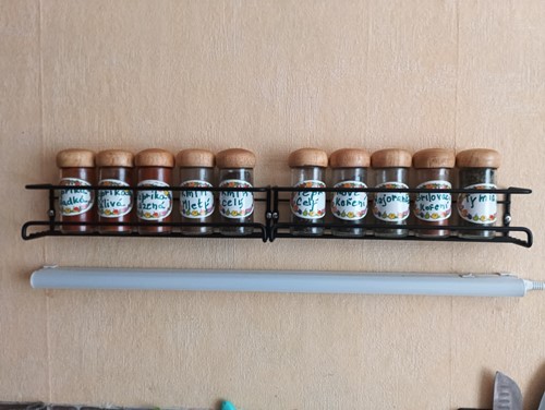 Jednoduchý a praktický dizajn našej poličky zaisťuje, že vaše korenie bude vždy po ruke. Ľahko sa prispôsobí vašim potrebám vďaka možnosti buď pevného privŕtania alebo ľahšieho nalepenia.