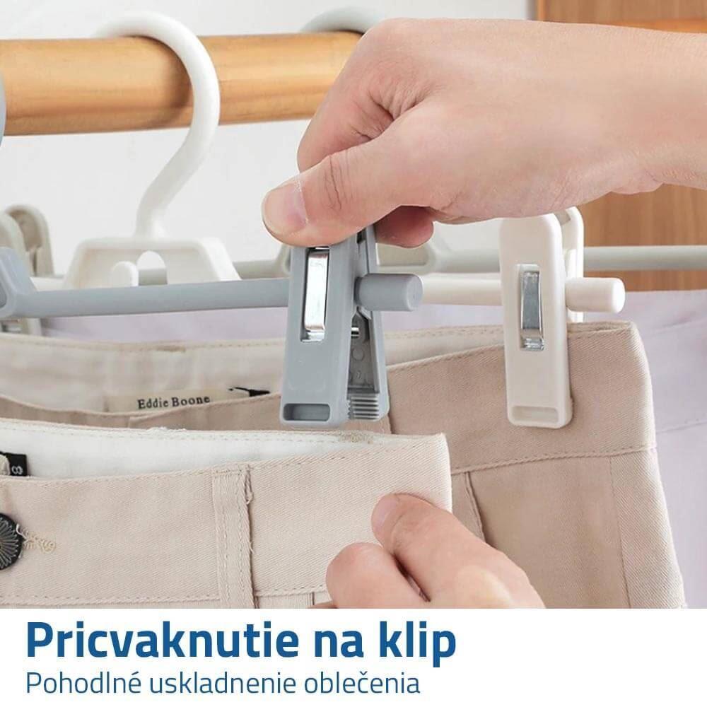 Ukladanie komínkov nepatrí medzi vaše obľúbené činnosti? Napriek tomu by ste si radi zachovali v skrini či v šatni poriadok a prehľad? Ramienko s klipmi vám pomôže s organizáciou všetkého oblečenia. Vďaka klipom naň ľahko prichytíte džínsy, nohavice, kraťasy či sukne. Môžete si tak behom chvíľky usporiadať všetky obľúbené kúsky do rady a mať ich neustále na očiach! Ramienko je navyše prispôsobené tak, že sa naň dá zavesiť viac kusov a ušetriť tak priestor v skrini.