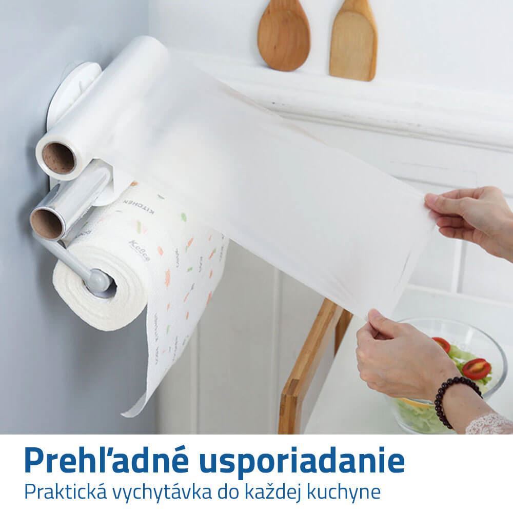 Chcete mať prehľadne usporiadanú kuchyňu a zároveň mať všetko potrebné neustále poruke? Tento držiak na utierky je praktická vychytávka 3v1. Do roztiahnuteľného držiaka jednoducho uchytíte rolku s papierovými utierkami. Nad držiakom utierok sa nachádzajú ďalšie dva organizéry, ktoré slúžia na uchytenie ďalších potrebných roliek. Horné držiaky sú vhodné na umiestnenie roliek s igelitovými vreckami, potravinovou fóliou, alobalom či s papierom na pečenie.